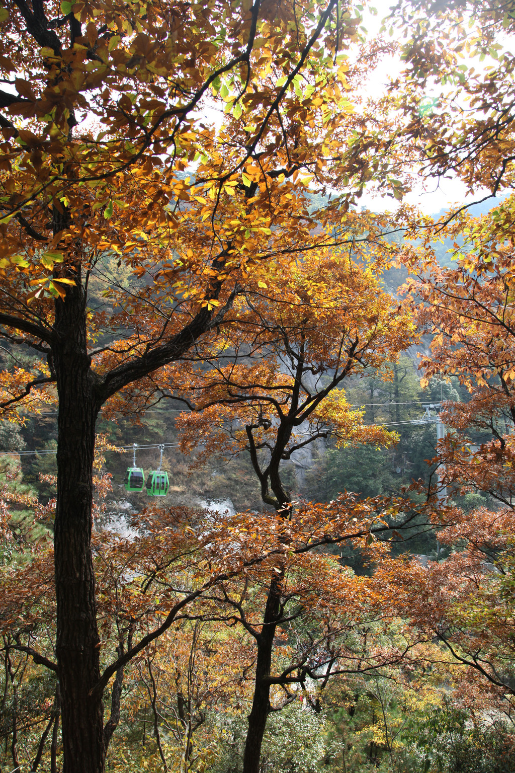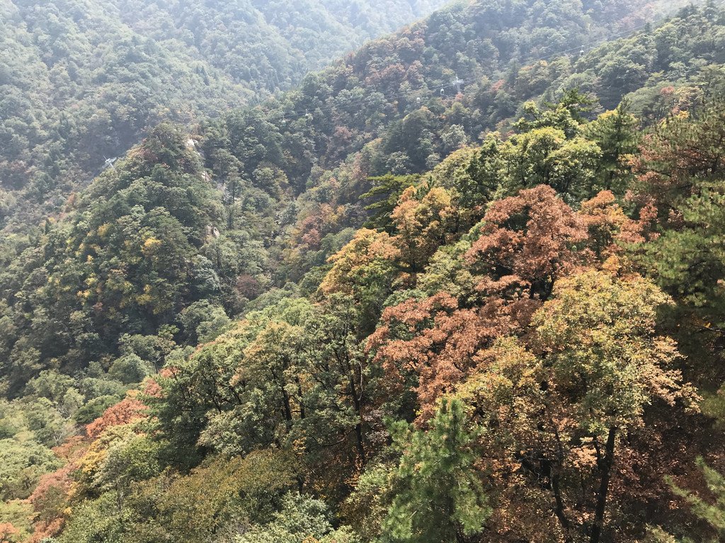 满满的秋天的记忆,霜重色亦浓,天堂寨景区,缆车在油画里穿过