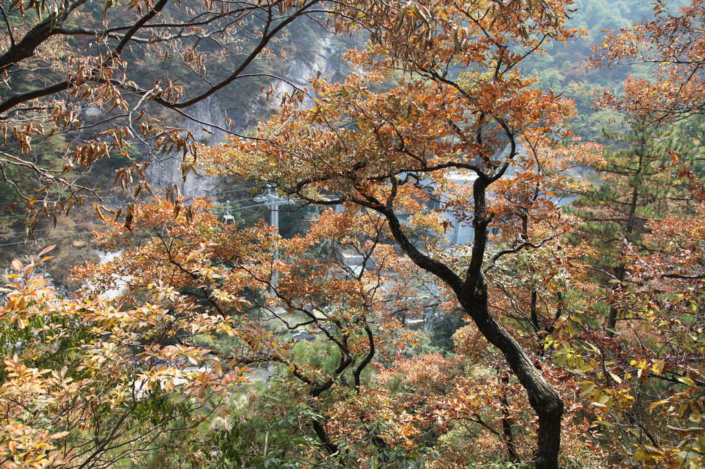 大别山风景,正逢秋日,层林浸染,霜红叶菁,片片金黄,天堂寨