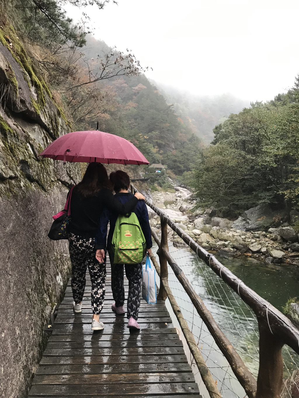 雨中漫步,行走在白马大峡谷栈道上