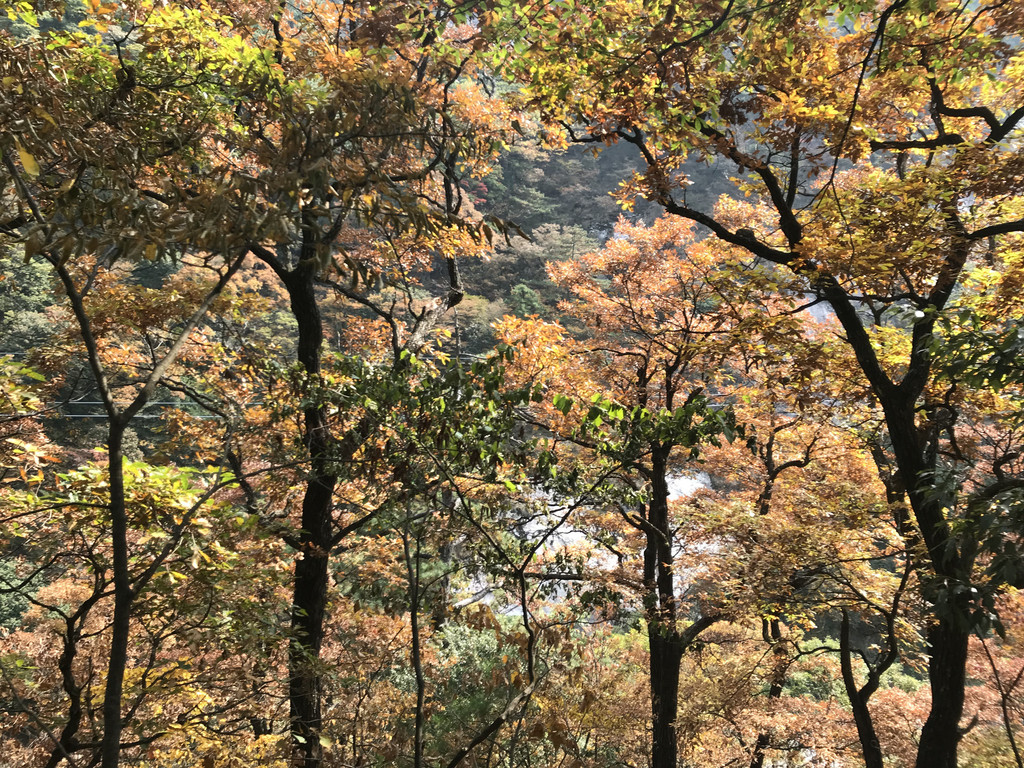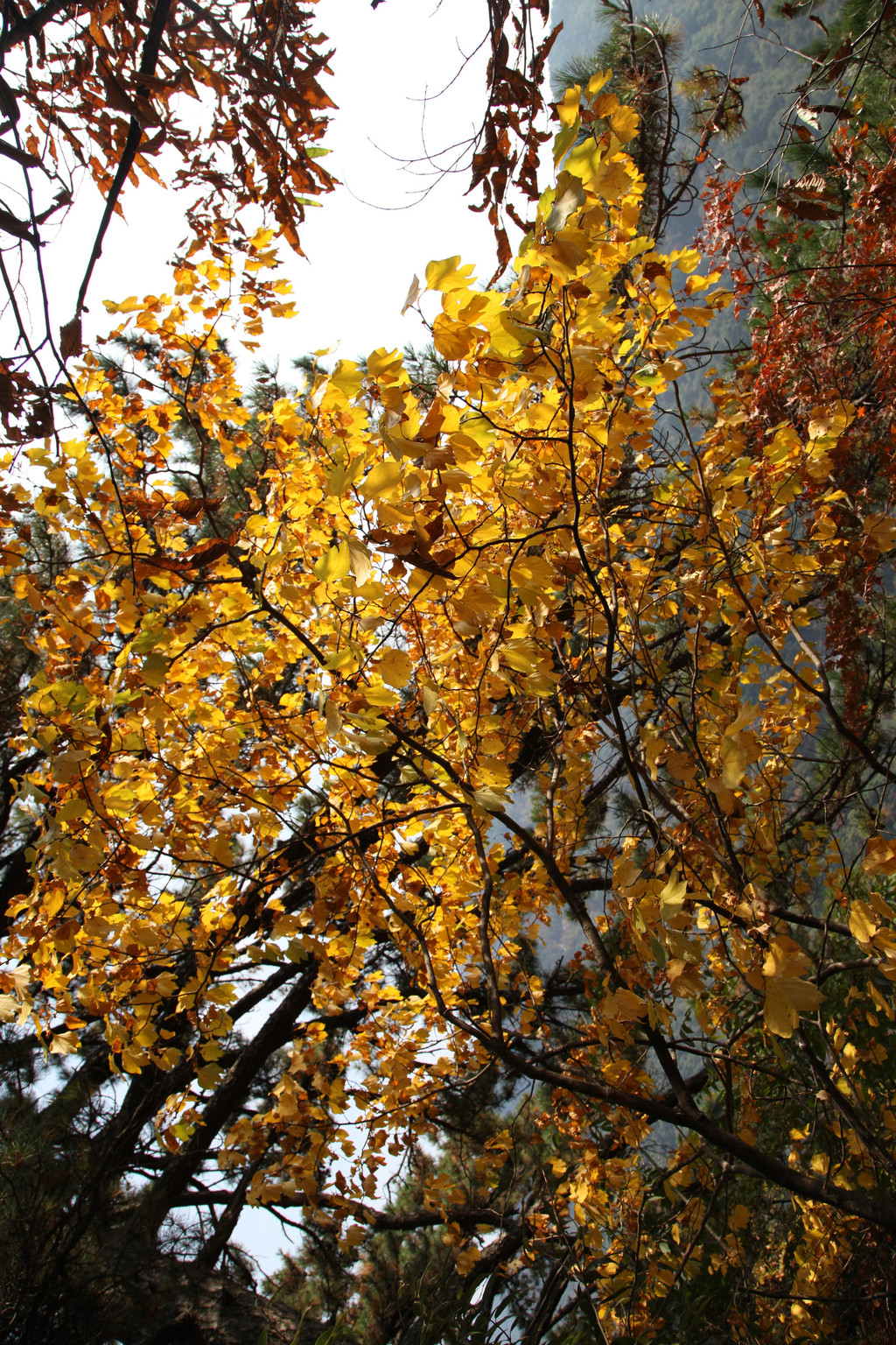 金黄色的树叶,漫山遍野,点缀着天堂寨绚烂多彩的秋天