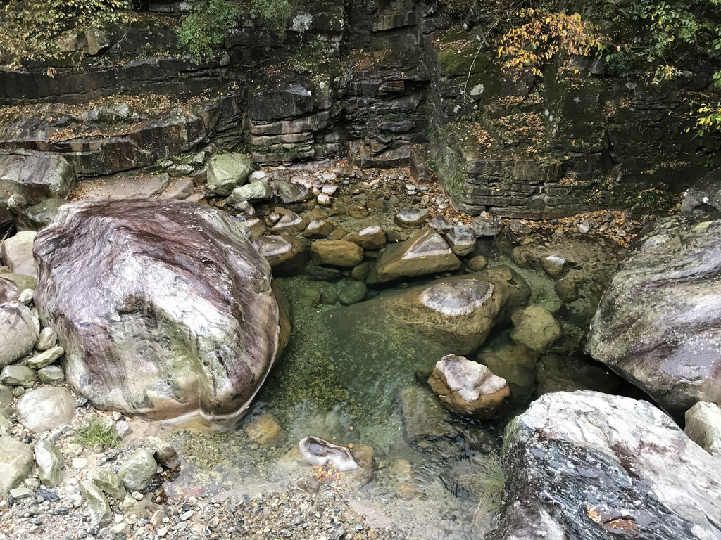 白马大峡谷,山洪冲刷下来的岩石,随意散落在沟谷里