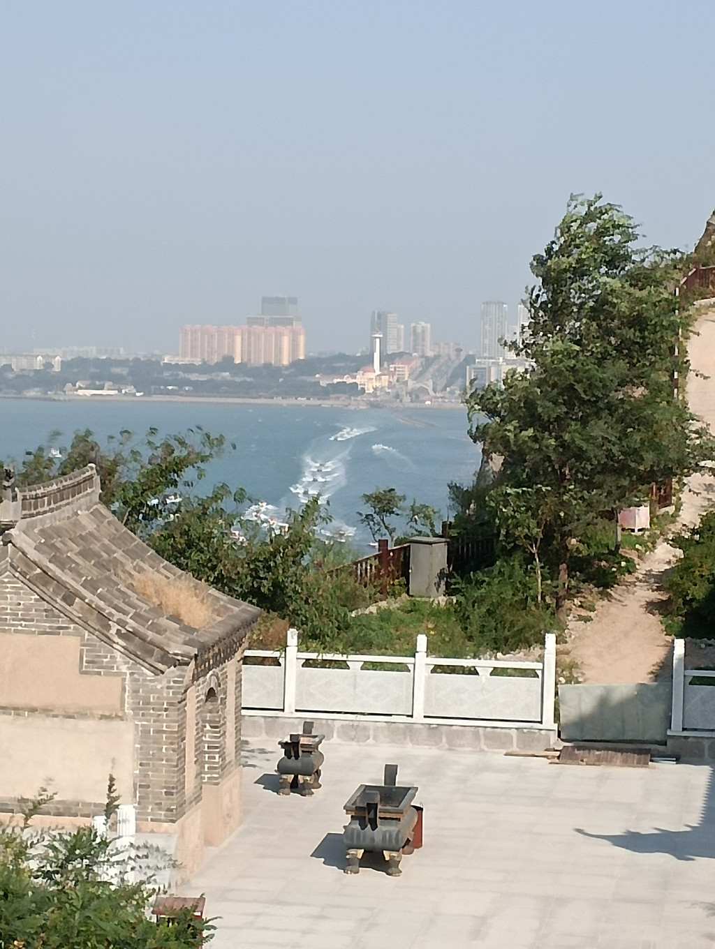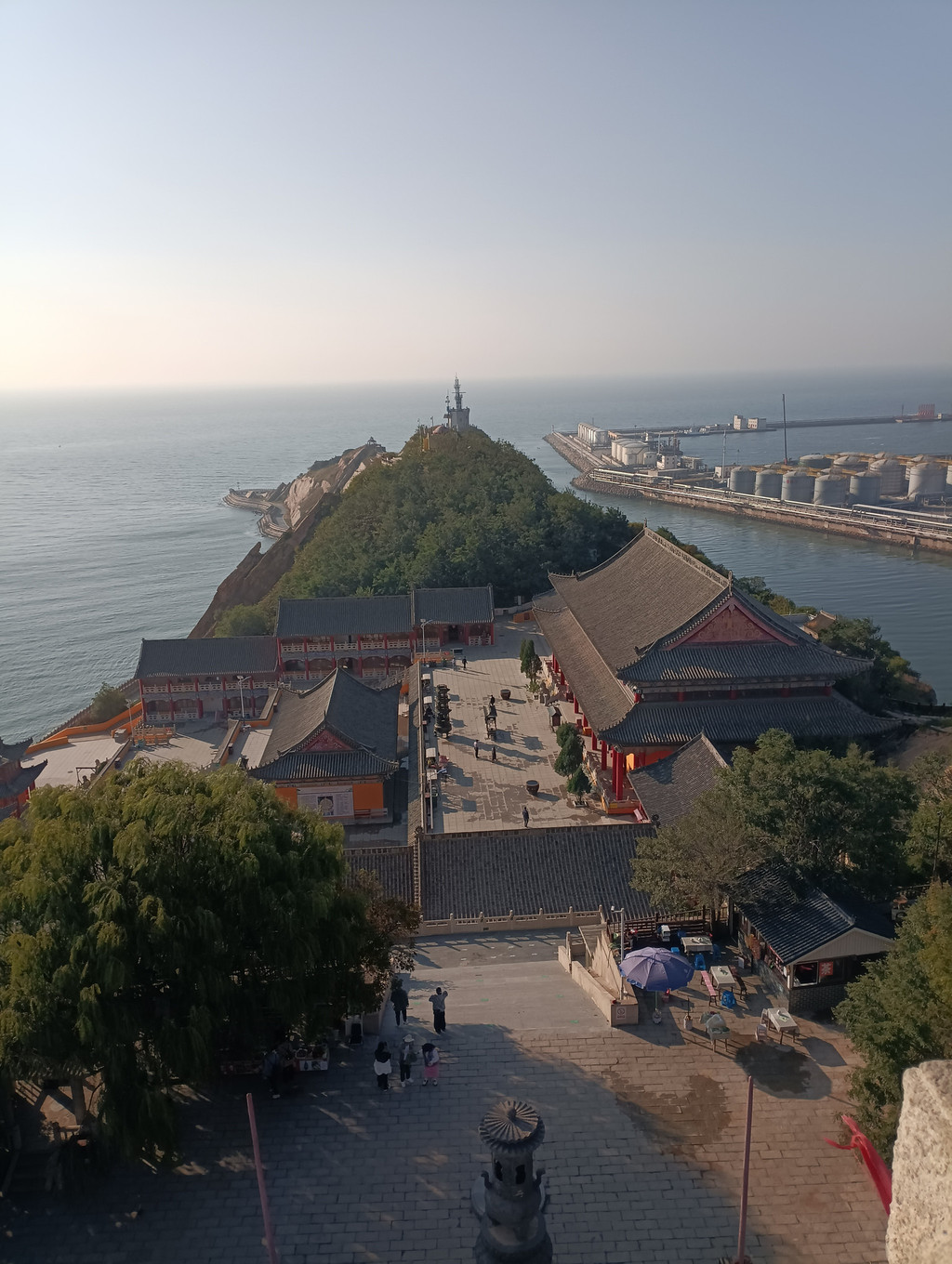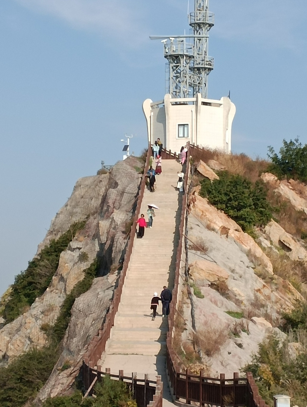 背景资料:笔架山位于辽宁省的西部,面对渤海,毗邻锦州湾,是一个近海中的一个连陆小岛,也是著名的道教胜地。笔架山有三个峰,二低一高,因形如笔架因此而得名。山上悬崖峭壁奇秀,自然风光迷人,自下而上建有山门、真人观、吕祖亭、五母宫、三清阁等众多道教庙宇及点缀品,其中以主峰之上的三清阁尤为精美。