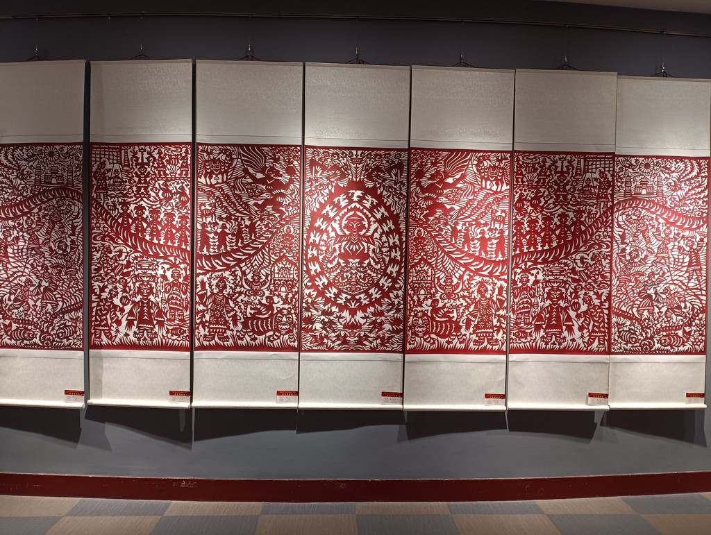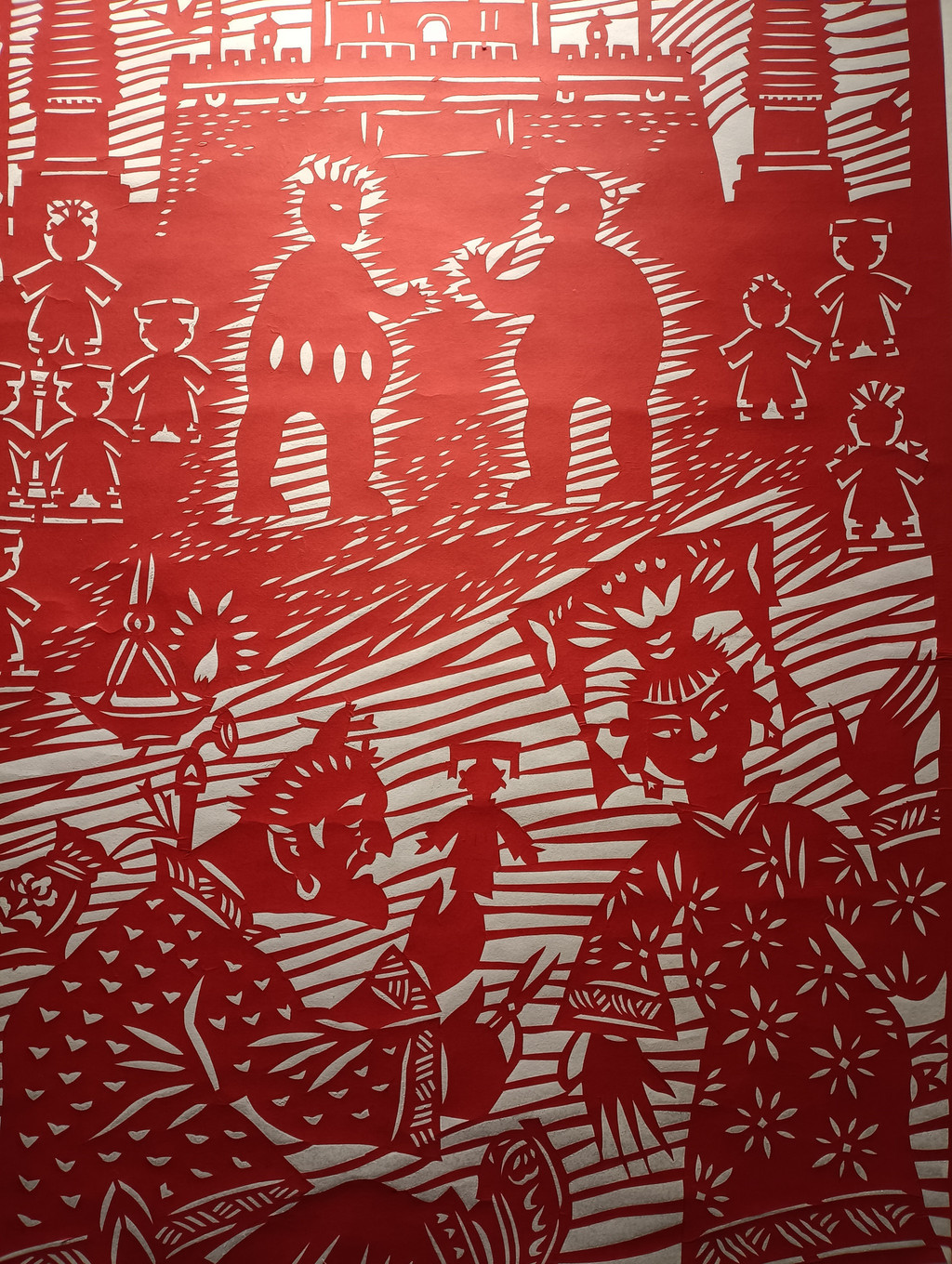 正在办剪纸展,挺棒的,尤其是一些满族风情的剪纸: