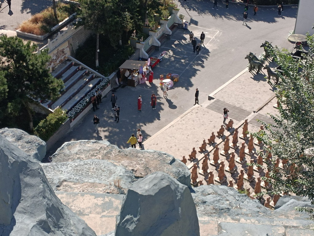 一化妆这个时间就不好控制了,我们三个老爷们陪了十多分钟就不耐烦了,决定兵分两路,我们先上山探路,媳妇儿陪两位妈妈化妆/选头饰,随后跟上。