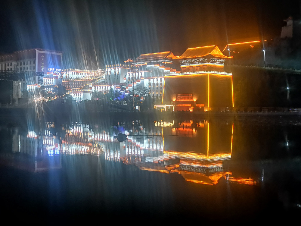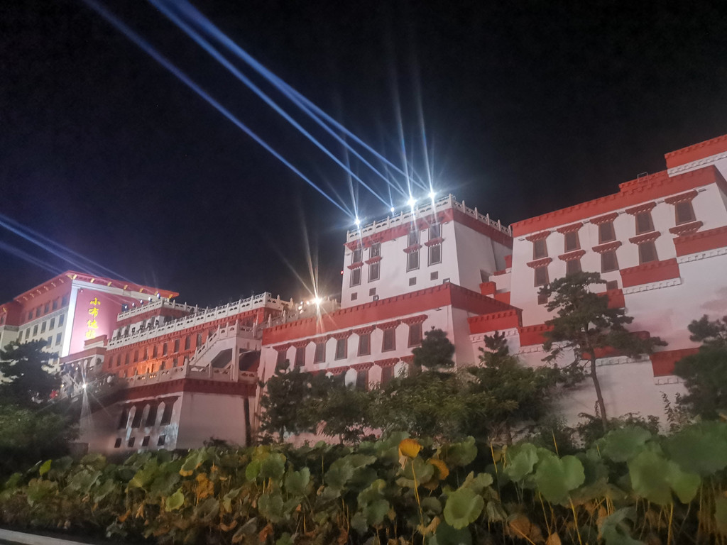 吃完晚饭到了凌海小布达拉宫已经是晚上8点了,漂亮的夜景立刻扫除了一路上的疲惫。在东门的免费停车场停好车,我们先在小布达拉宫广场上各种拍照,广场上的人很多但远没想象中人山人海那么多。