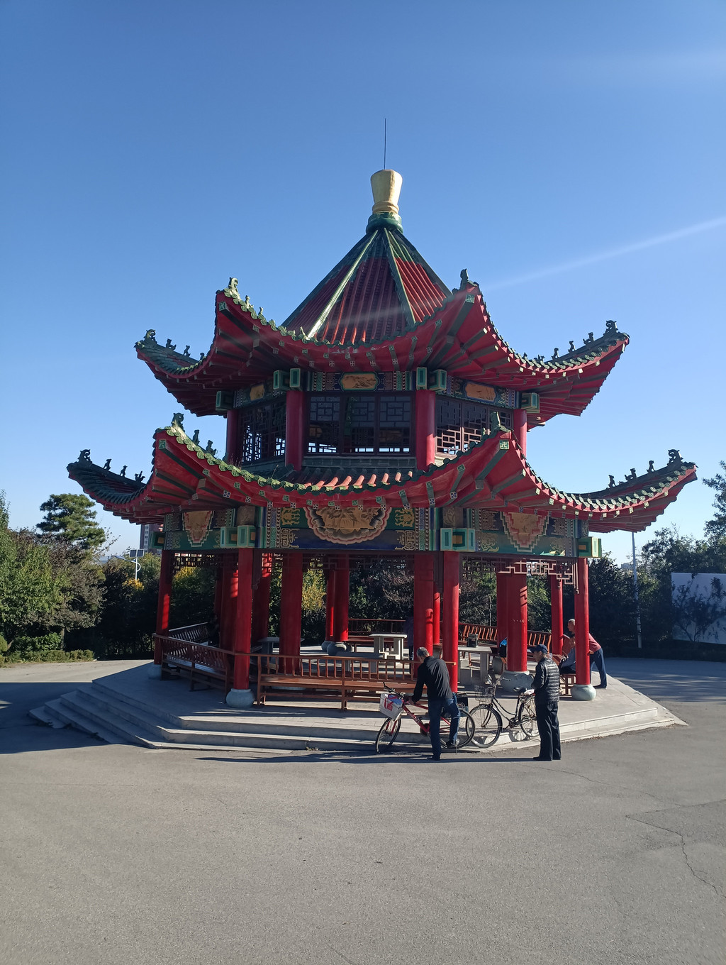 (八角亭,碰巧遇到一位吹口琴的老者,正在吹国歌和一些适合国庆的曲目,很好听)