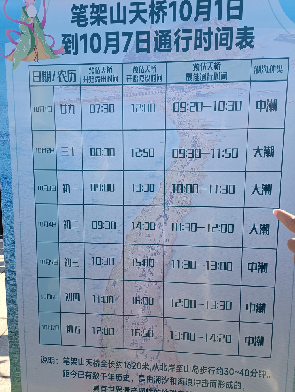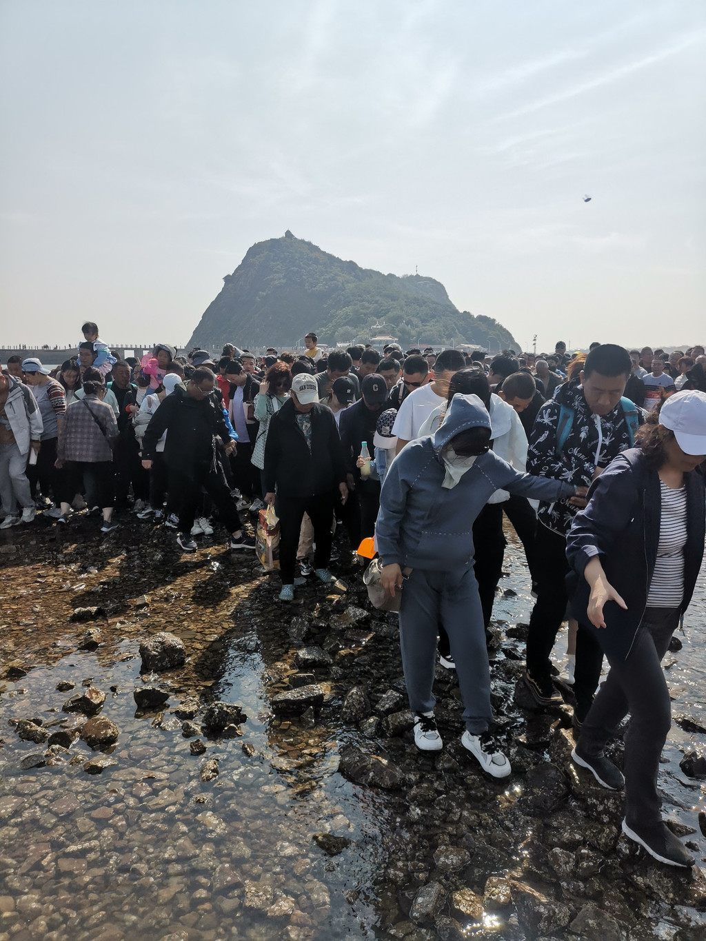 景区预告的最佳过桥时间是10:30-12:00,实际我们是10:00前就到桥头待命了,而11:10才真正通桥,走到对岸正好是12:00.