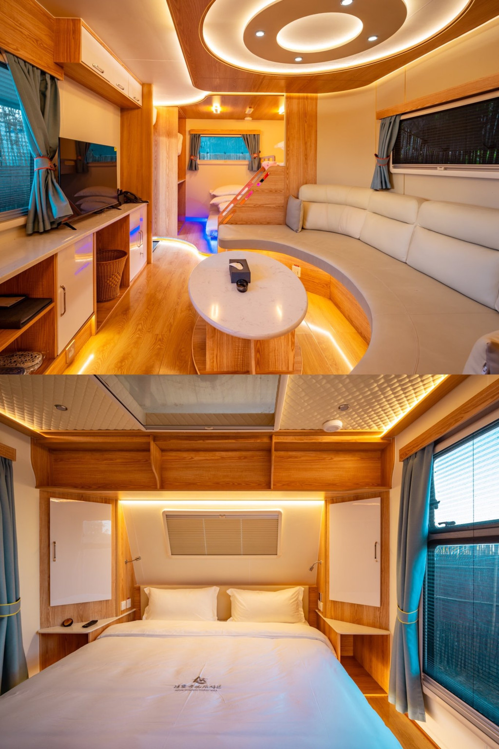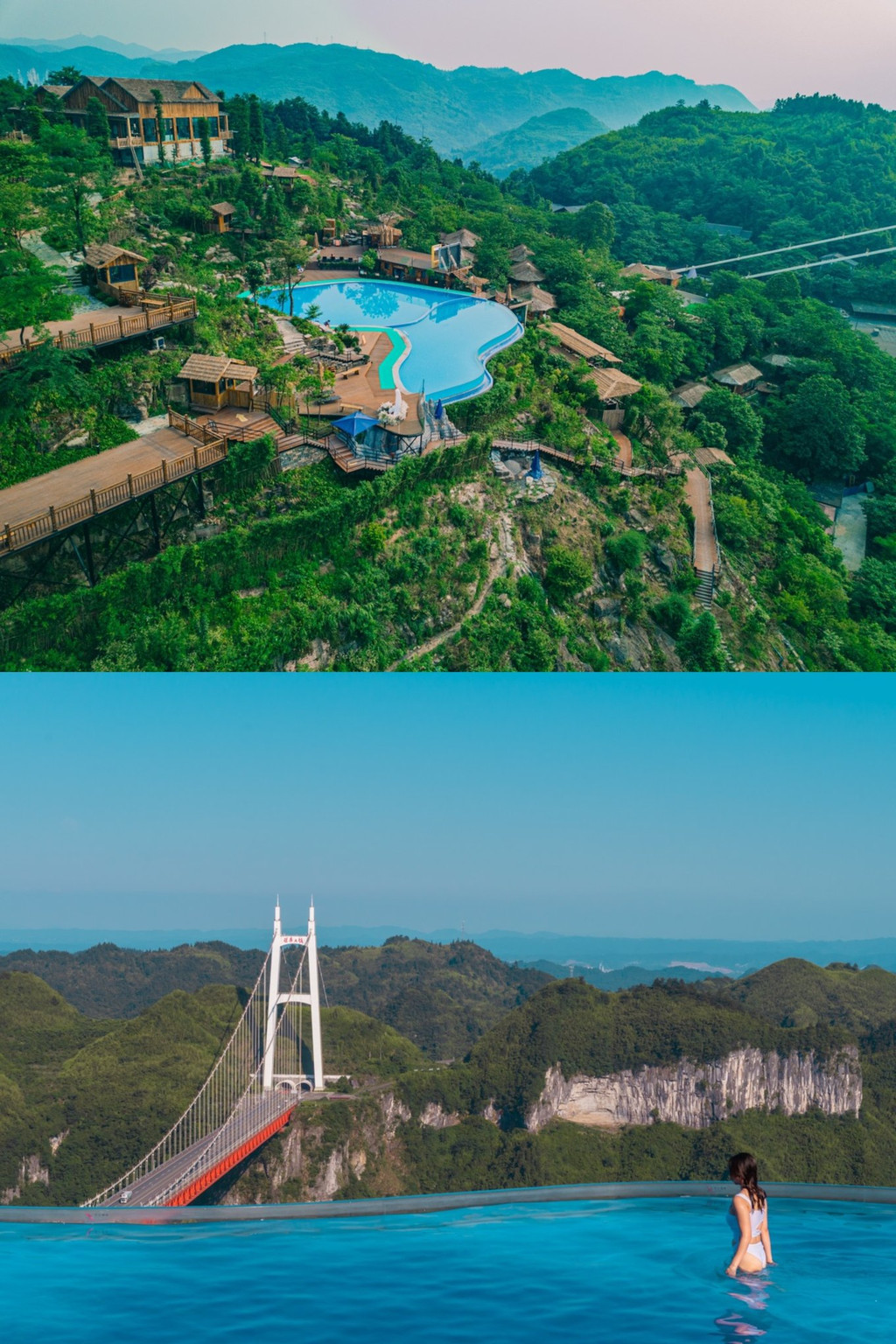 🌺关于住宿:当然是选择矮寨大桥旁边的天桥 仙居 啦,坐在房间就可以看大桥,这里房型有木屋、全景玻璃屋、星空帐篷以及房车,选择多样各有其特色,我们住的房间里还配备了茶室,机麻,投影仪和浴缸,超级棒!在 仙居 最高处是一个颇大的无边际恒温泳池,穿上泳衣欢快的游几圈,然后听风看矮寨大桥,惬意又轻松。