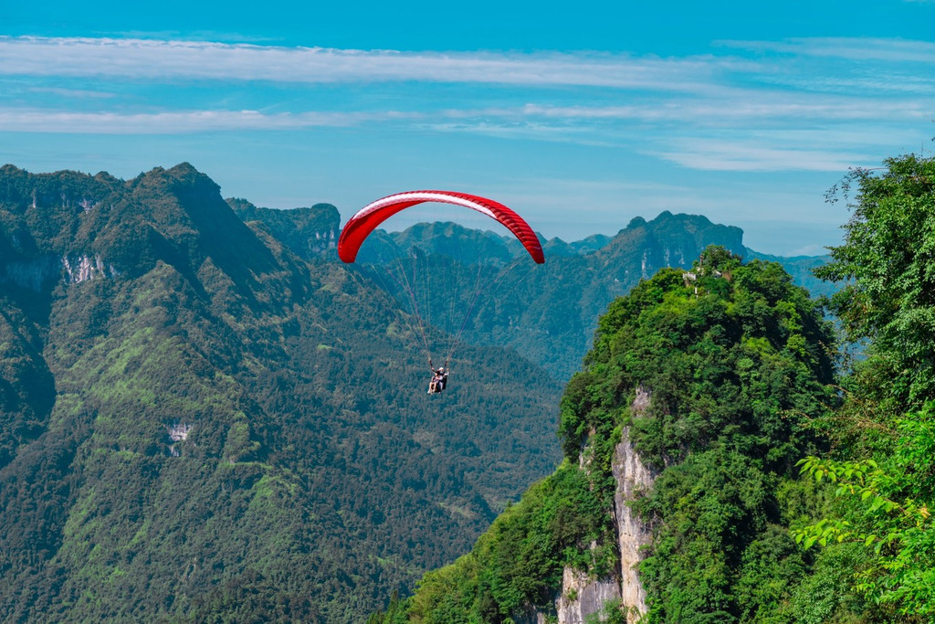 3⃣️滑翔伞:乘坐滑翔伞观大桥,盘山公路和矮寨河湾,不一样的视角不一样的体验。天气合适,喜欢极限运动的你不容错过。
