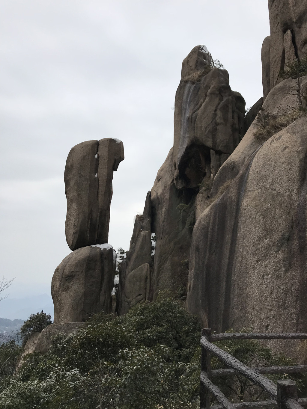 后来我们在百岁宫看到的九华山最著名的天然睡佛景观就是花台群峰组成的。在花台零距离接触睡佛,却又很难想象睡佛的模样,可叹只缘身在奇峰中。
