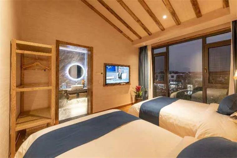 客房和餐厅原木本色白蜡木家具,客房智能化声控系统、电信iTV电视、 百兆网络wifi上网系统、可调式中央空调、大屏幕液晶电视。精心设计的客房,人性化的空间规划与房间设计,为您提供安全、卫生、舒适的休憩环境。“GoodMorrow 只为更好的出发”姐妹食尚朴宿希望用宁静暖居和自然朴实的能量,为中途停靠的您补充能量,助您自在前行!