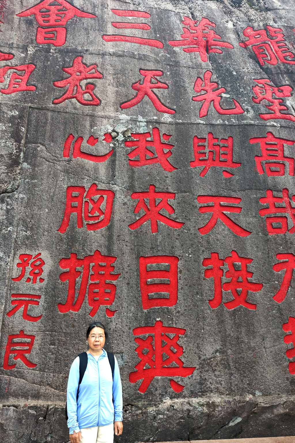去天台寺前,我们先前往右侧的九华山第一高峰 —— 十王峰(1344.4 米)。这里台阶陡峭,道路两侧危崖叠嶂,怪石狰狞。登上十王峰,极目远眺,大小山峰匍伏脚下,颇有 “一览众山小” 的感觉。