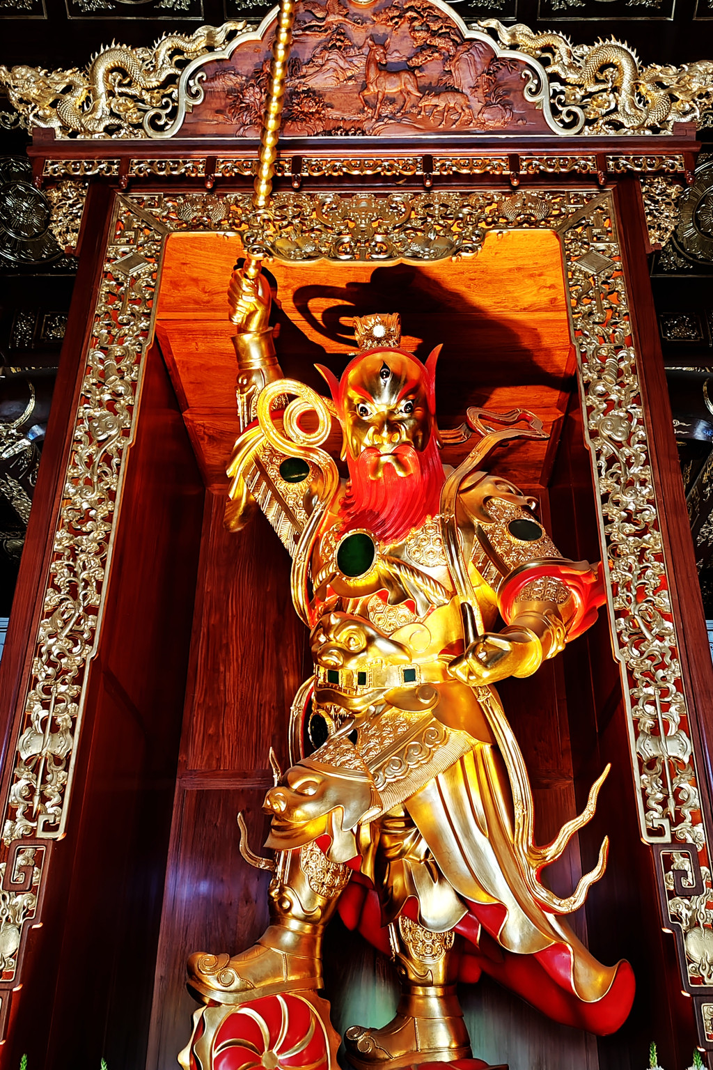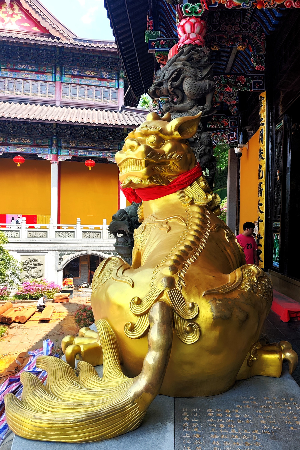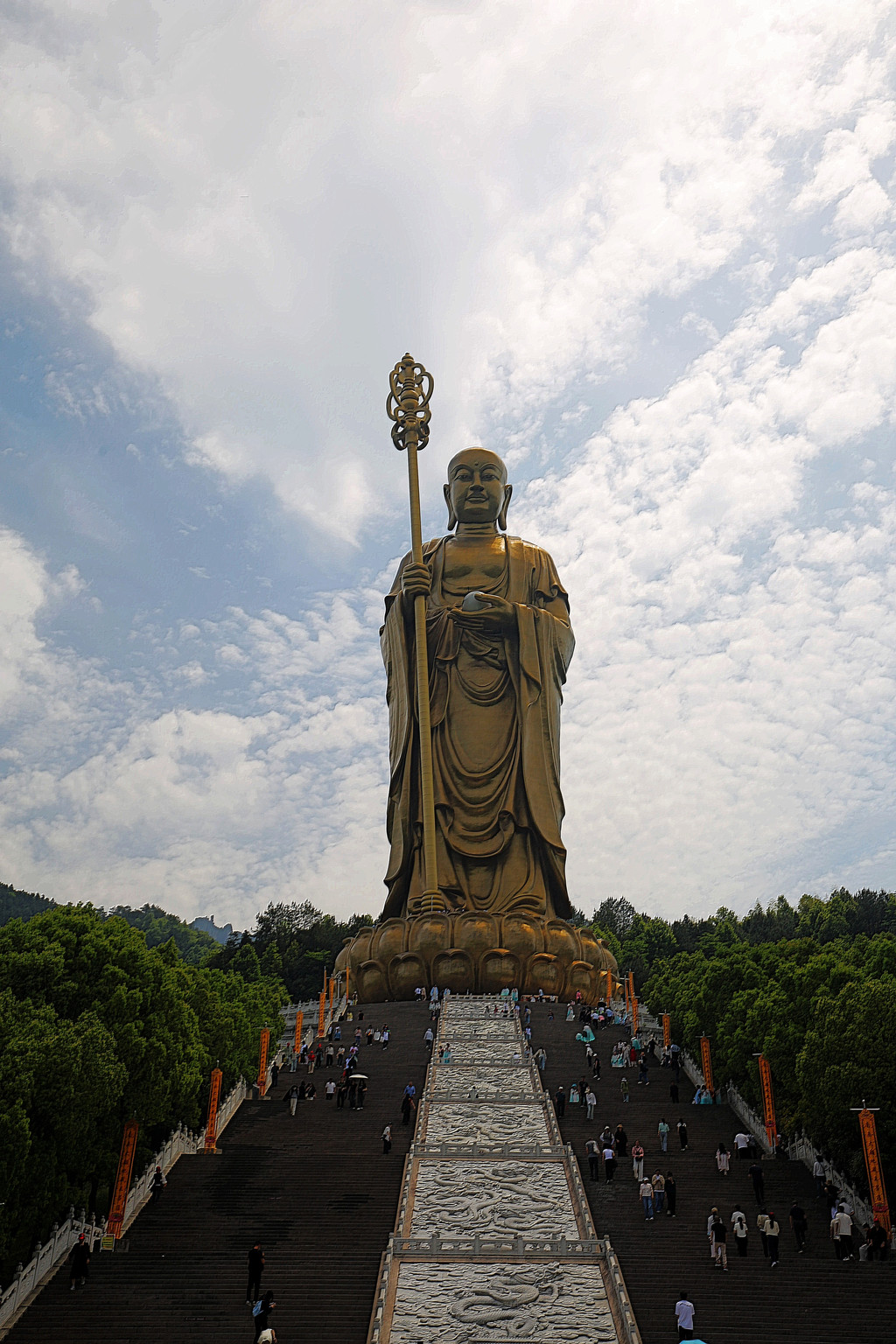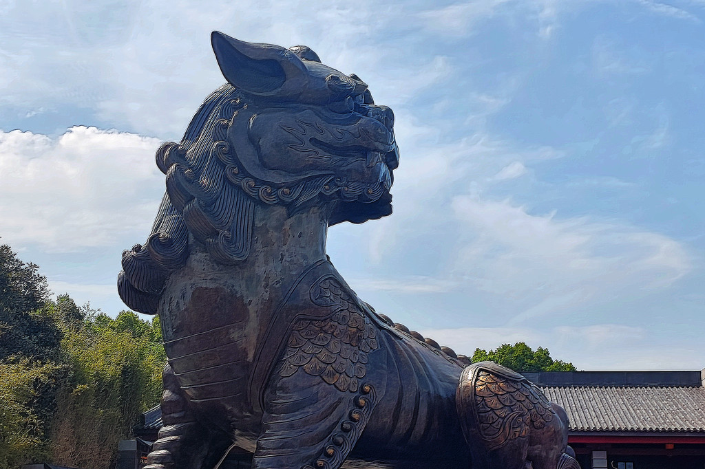 观赏完表演,我们继续朝着地藏菩萨铜像前行。路过神兽谛听时,由于民间流传着 “摸摸谛听尾,顺风又顺水” 的说法,此处排起了长长的队伍,无奈之下,我们只好放弃。