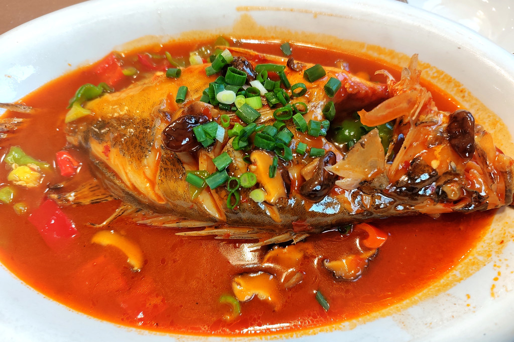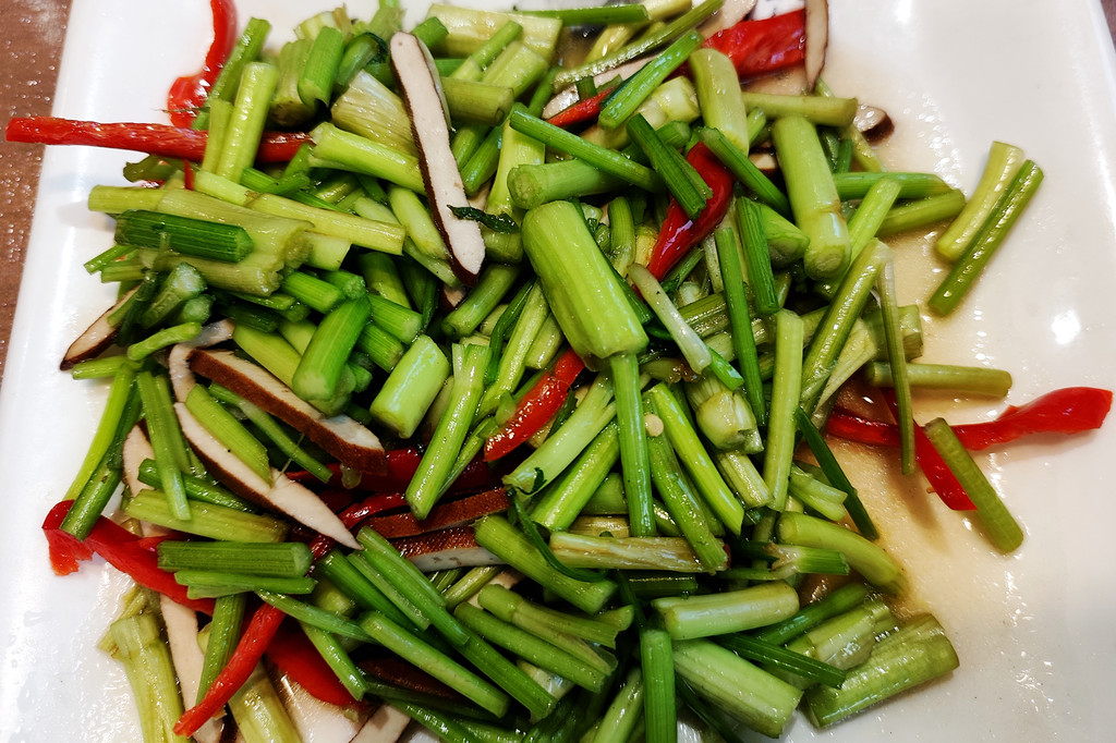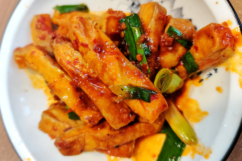 连续品尝了几顿斋饭之后,夜晚时分,我们来到了董家小厨徽宜饭店(肉身宝殿店)。点上臭鳜鱼、毛豆腐、九华三鲜、水芹干丝、素排骨等几道特色菜肴,也算是小小地改善一下伙食。
