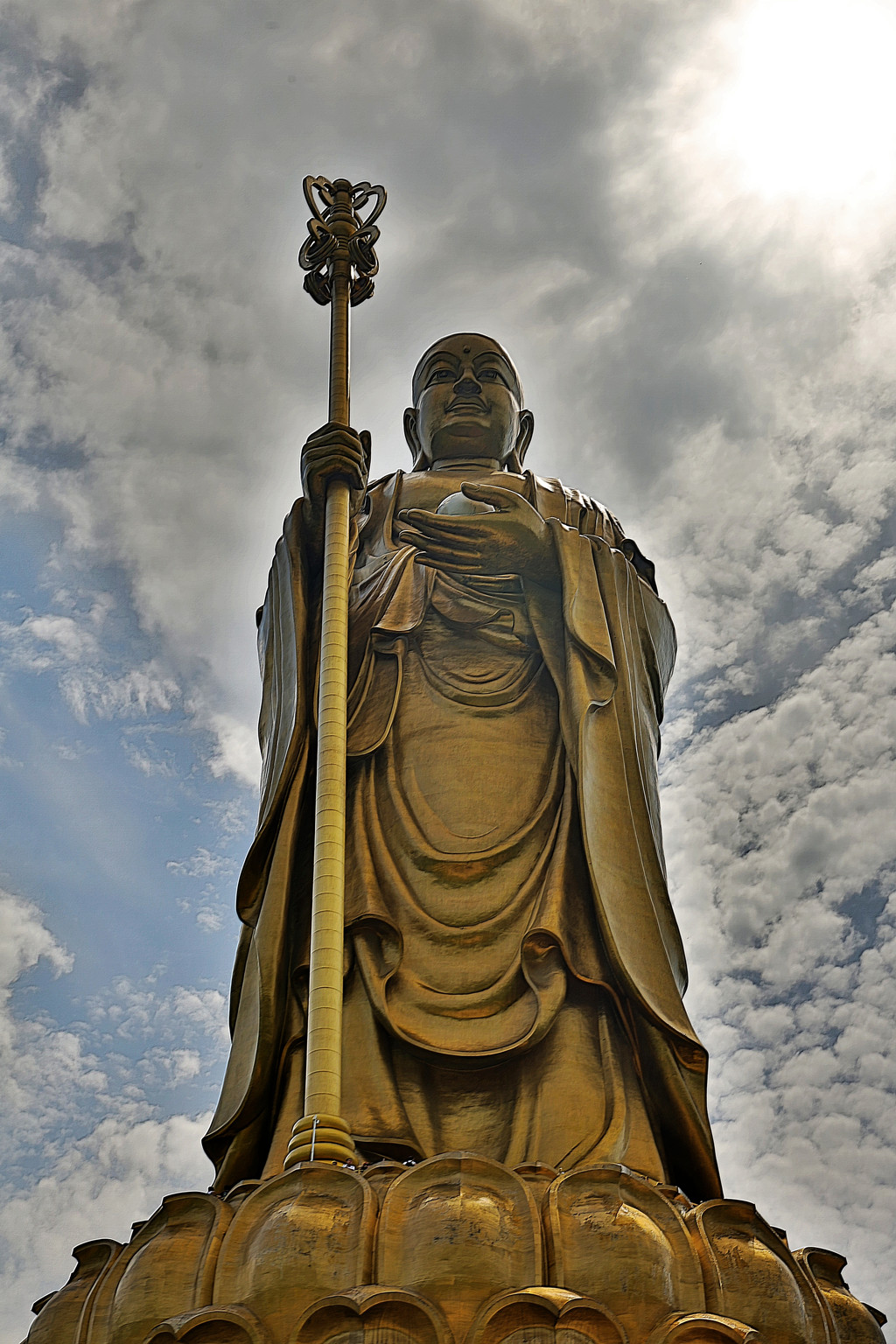 大约上午 9:30,我们踏入了大愿文化园。园内那高达 99 米的地藏菩萨露天铜像,堪称世界第一高地藏王菩萨露天铜像,若连同底座计算,总高度达到 139 米。每年春分和秋分时节,这里还会出现独特的 “佛光” 奇景。