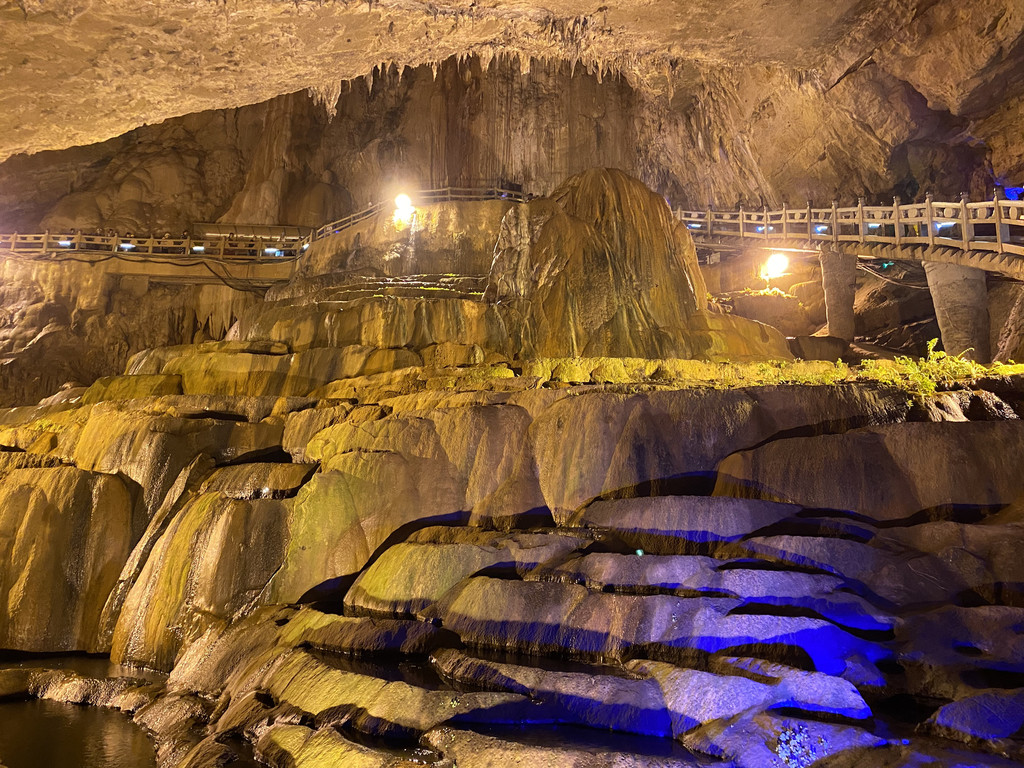 5、一路向下后重新进入溶洞就开始不间断的景点了,神女宫、雌雄双瀑(水量小只能看到单瀑)、神田、林荫寨、蝙蝠洞。地下景观真的是令人叹为观止,再一次感叹大自然的神奇,感叹先人的智慧让我们能一窥这地下奇景。