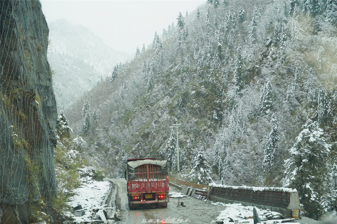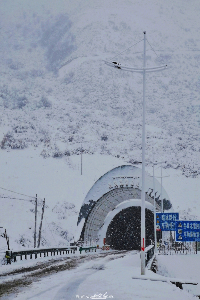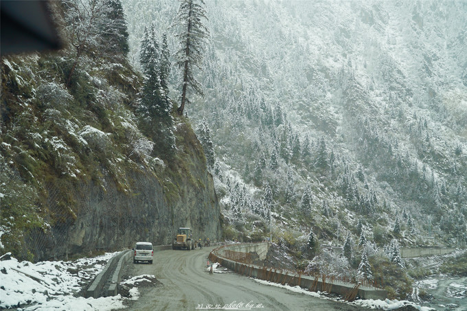 翻过雅克夏雪山垭口,海拔不断下降,雪也渐斩小了,一拐弯,忽然就看到了修路施工的车辆和工人,心里一下子就踏实了许多。