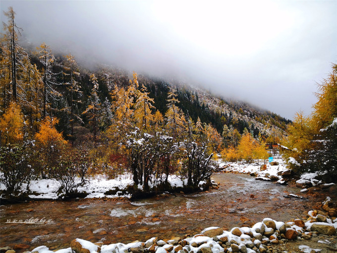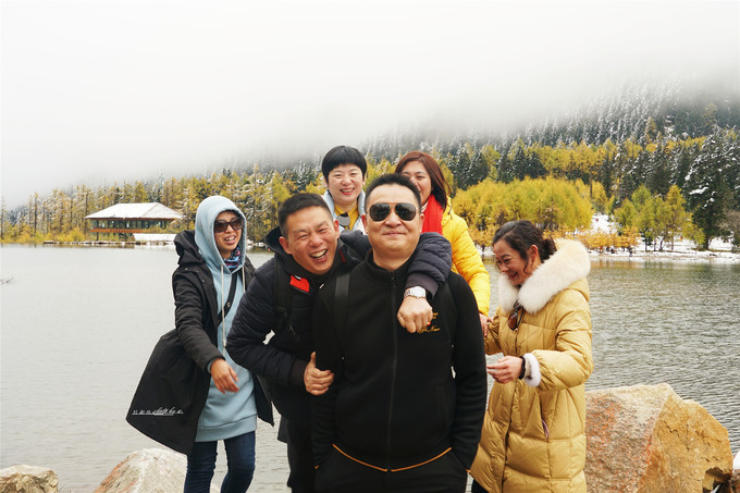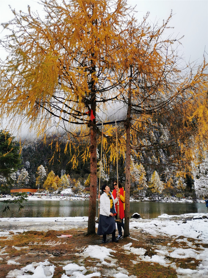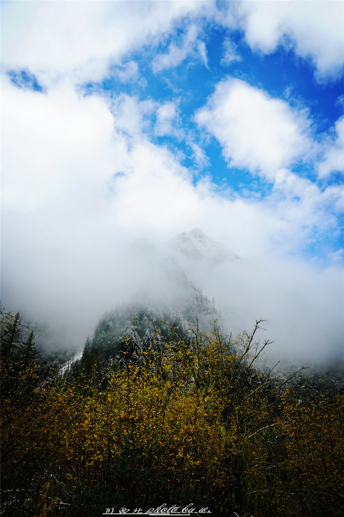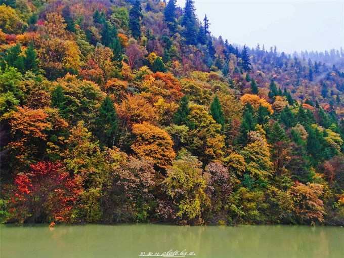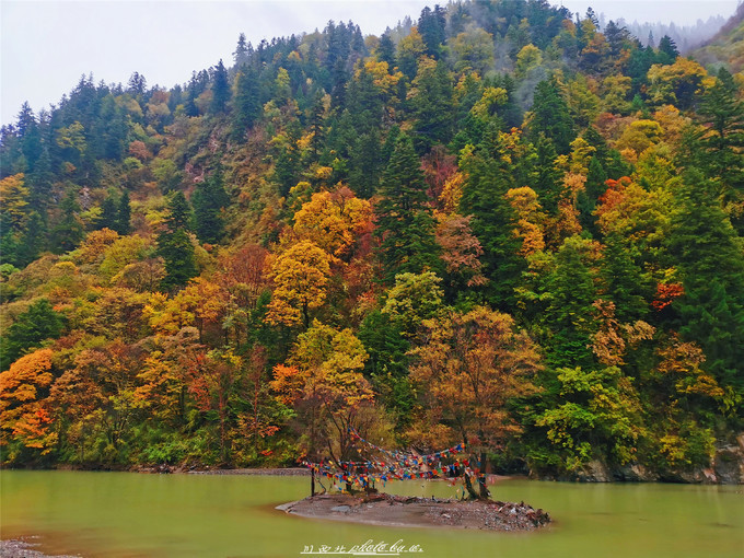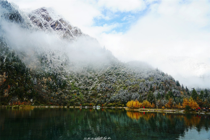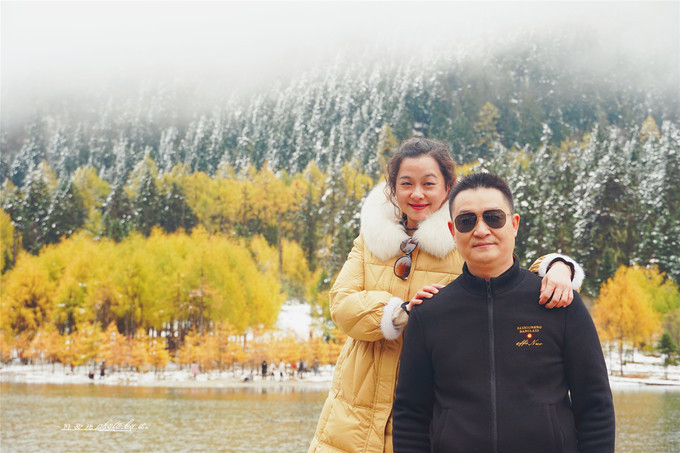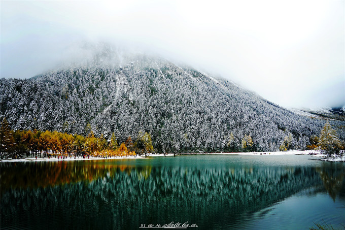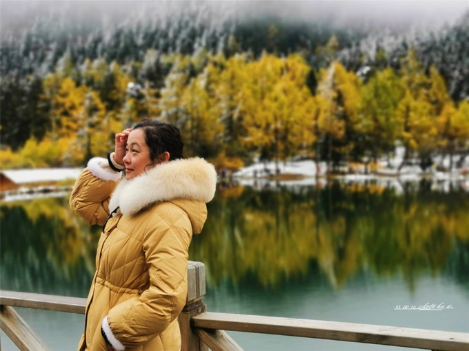 说磐羊湖是毕棚沟最美的地方一点都不为过,雪山、森林笼罩在乳白色的云烟中,影影绰绰,半山秋色半山雪,美轮美奂。