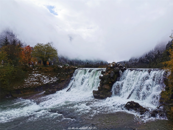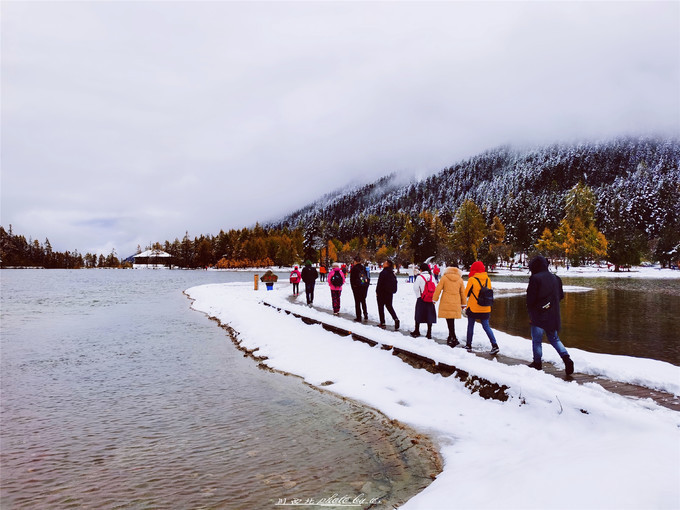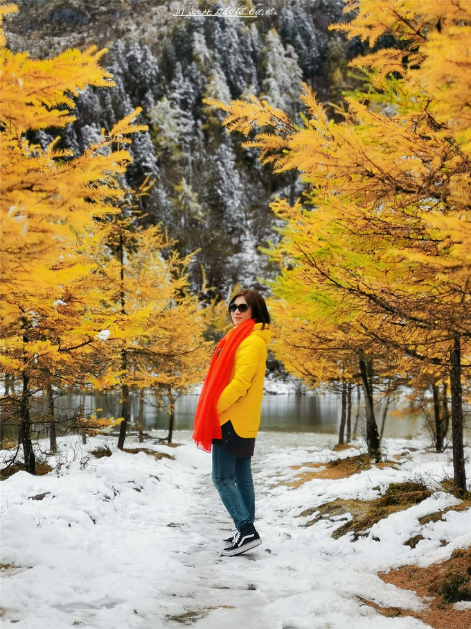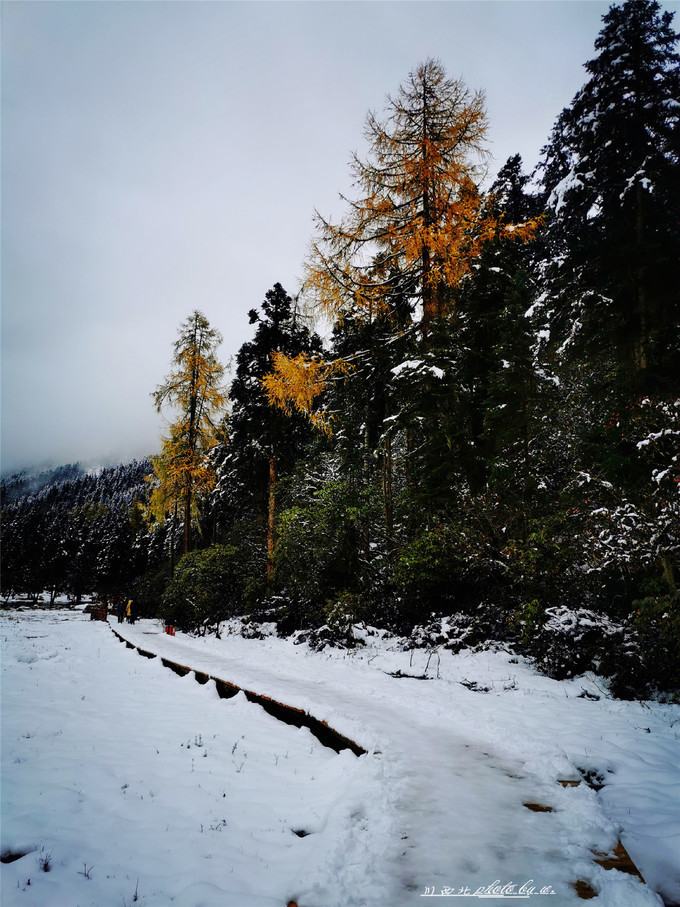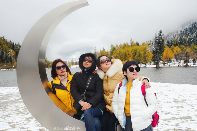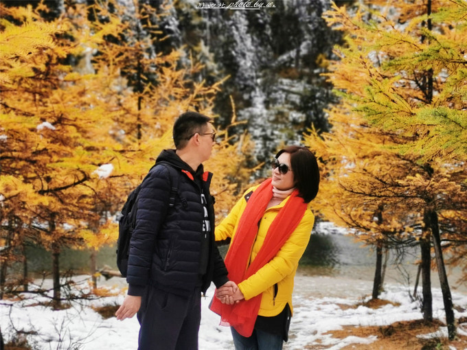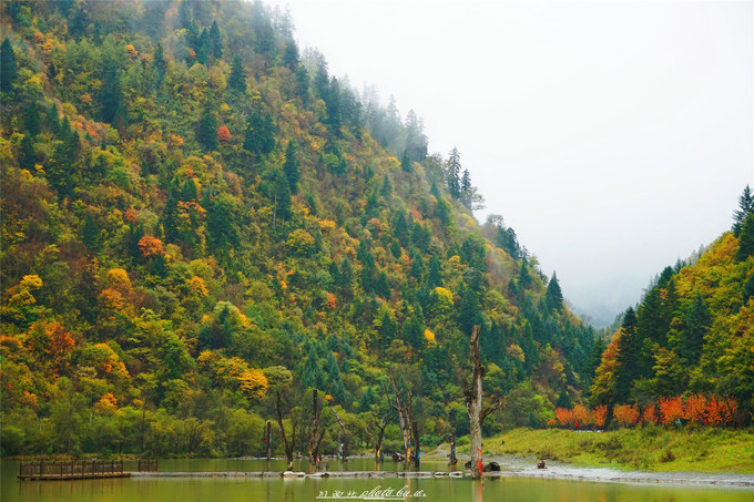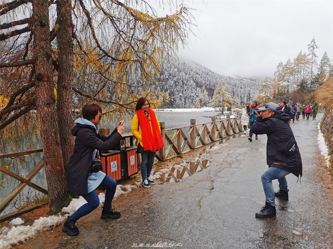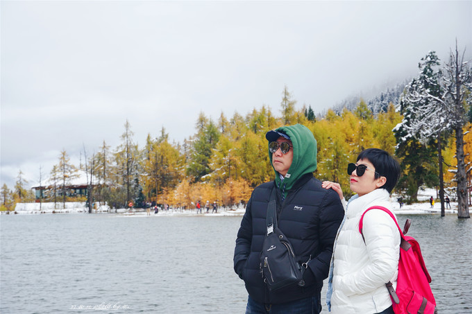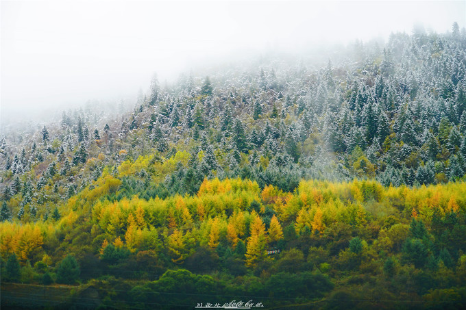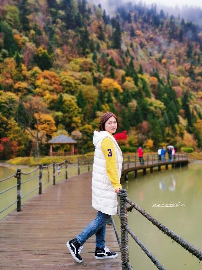 说磐羊湖是毕棚沟最美的地方一点都不为过,雪山、森林笼罩在乳白色的云烟中,影影绰绰,半山秋色半山雪,美轮美奂。