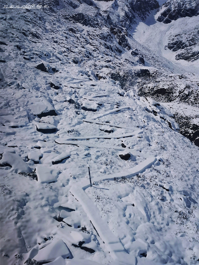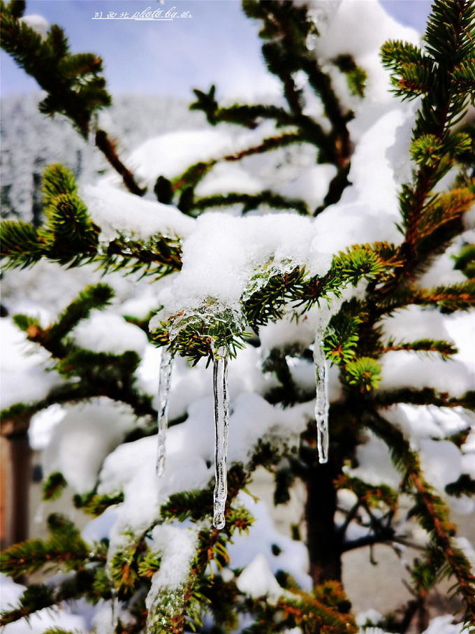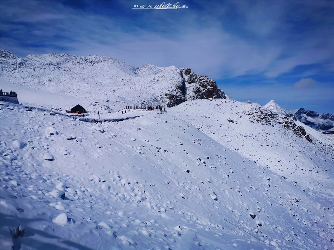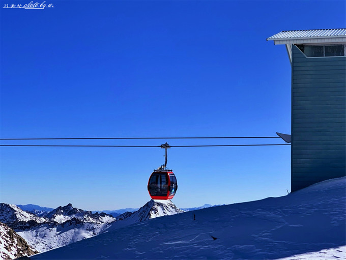 15分钟后,缆车把我们送到了海拔4860米的高处,风冷的无情,却美的窒息,雪像棉花糖一样松软,在风的鼓动下,屋檐的冰凌迎着阳光变成闪耀的钻石。