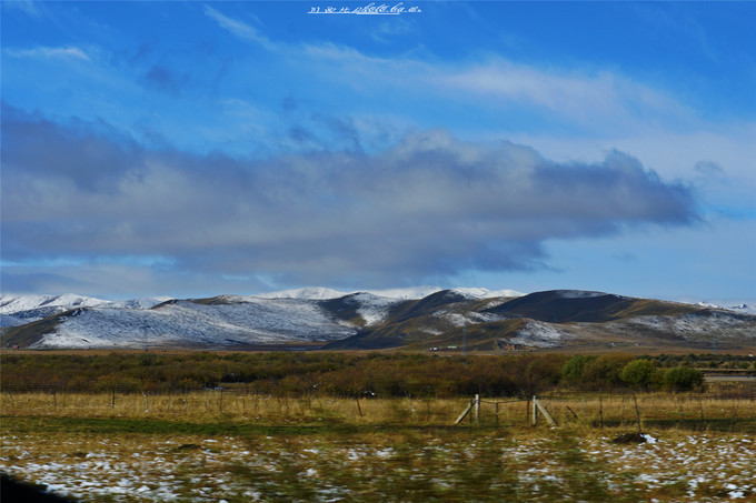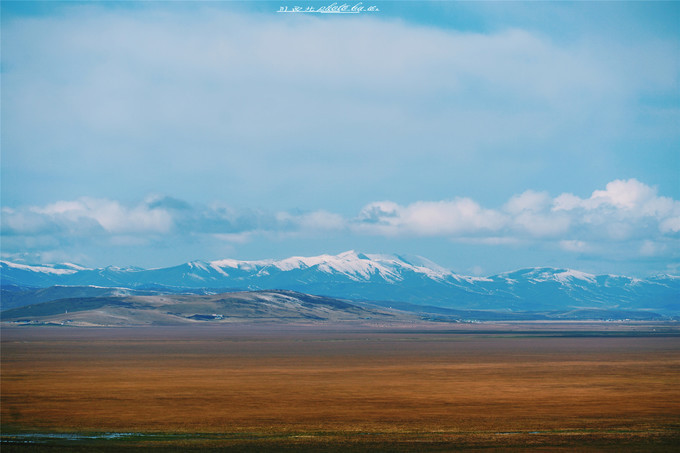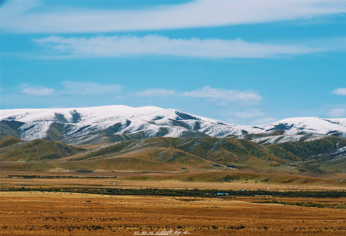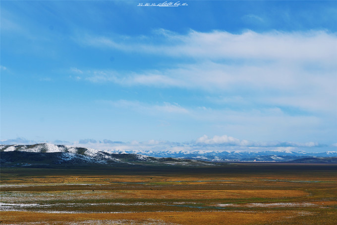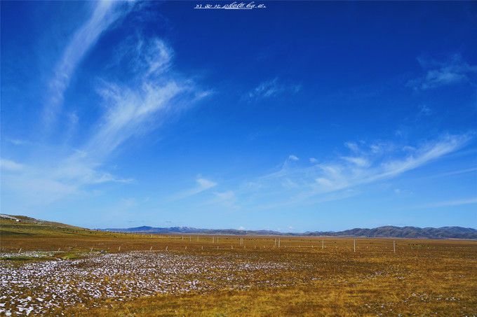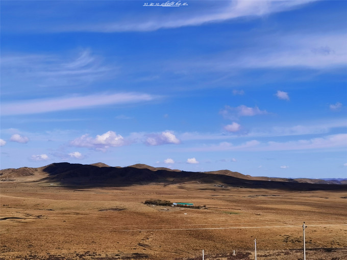 但高原,从不会让人失望,它最大的魅力,是无法预料下一刻会见到什么。云层转眼间就被蓝天撕开了一个大口子,阳光洒下来了,笔直而宽广的道路两旁,草原被涂抹上了金黄,深蓝的苍穹,飘逸的云彩,行云流水,如诗如画。
