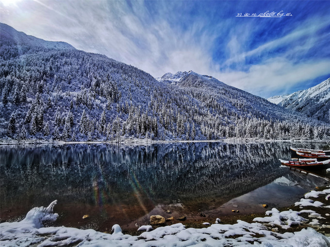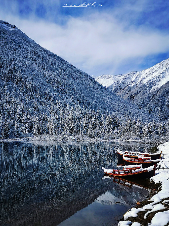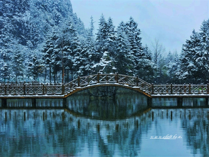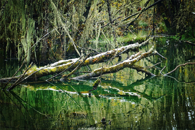 瞧,那染上白雪的树林、倒影是不是像极了 中国 山水画里的留白,时间就在这里,或静止,或流动,安静,是一种多么温柔的力量。