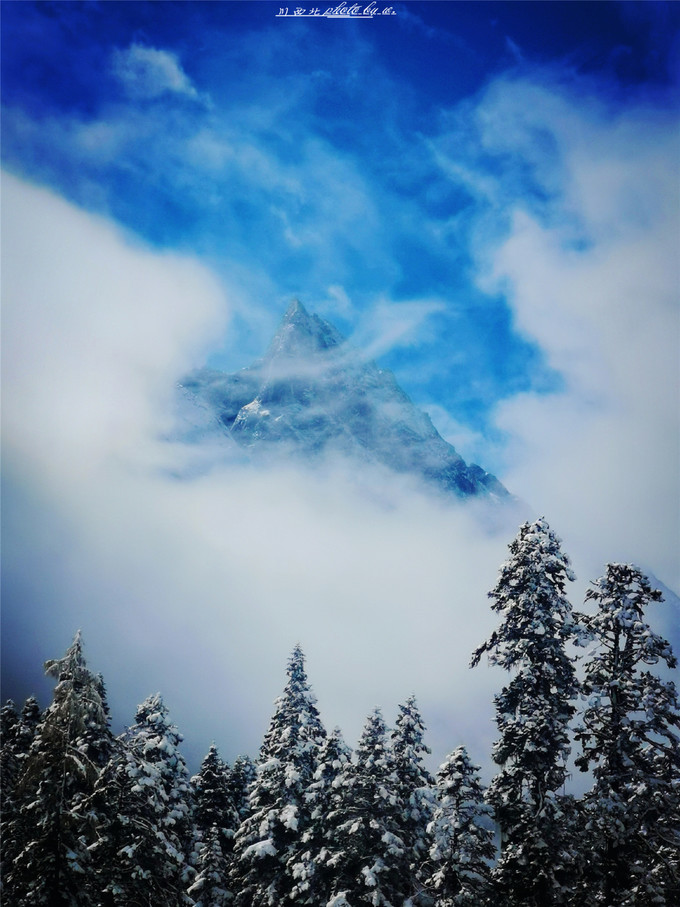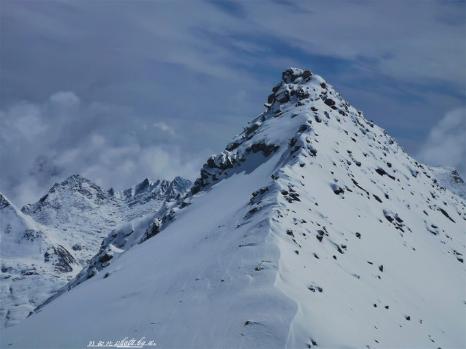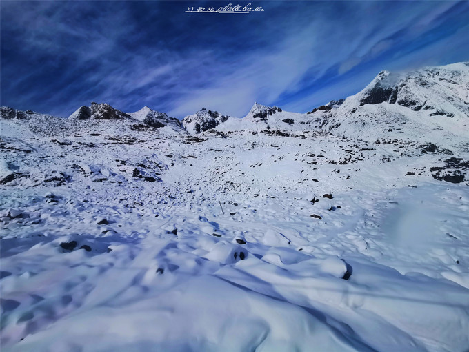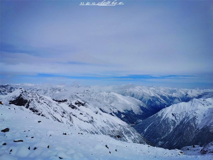 站在山巅,一切的景致还原了它本身应有的颜色,洁白的冰雪,澄蓝的天空,此起彼伏的雪山没有边际,一直从亘古连延到未来。