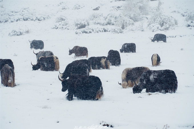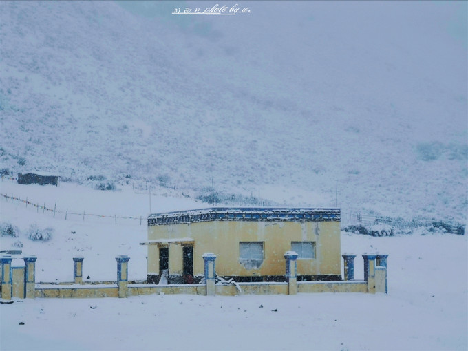 雅克夏雪山,当这座我从未听闻过的雪山出现在我们面前时,我们十分“幸运”地遭遇了暴风雪。山路没有围栏,车轮下是茫茫白雪,身边是巨幅的黑色山体,岩石被白雪覆盖,黑白交融,安静又危险,前方,总有一座若隐若现的雪山在风雪中看着你,等着你,这样的冲击感让人又向往,又紧张。