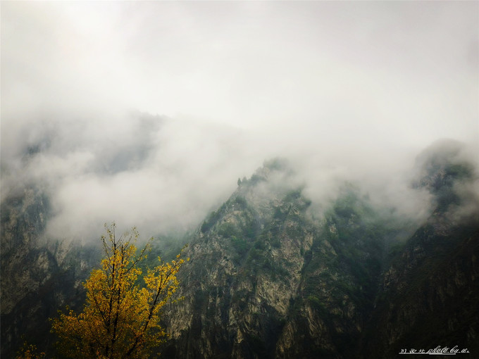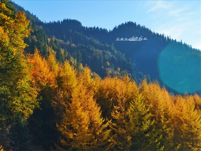在这个色彩斑斓的季节再次路过奶子沟,或许是因为有了阳光的照耀,昨天还是浅黄的山林,今天就变成了金黄,满山的热情将你环绕,心,也就暖了。