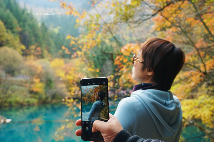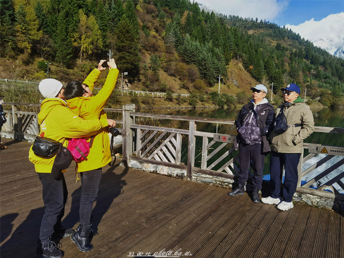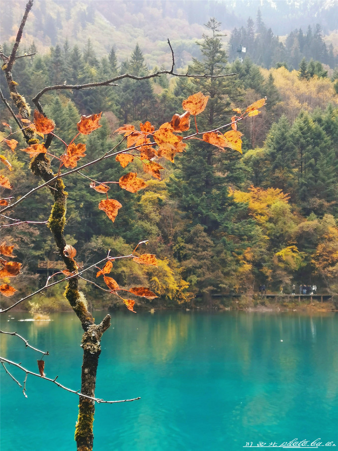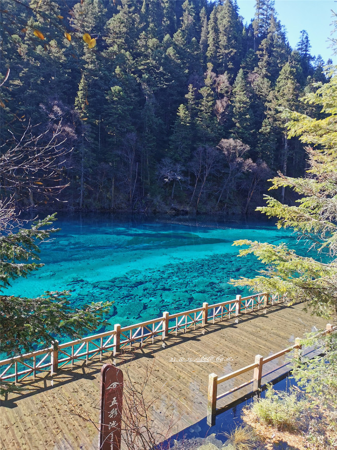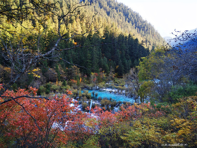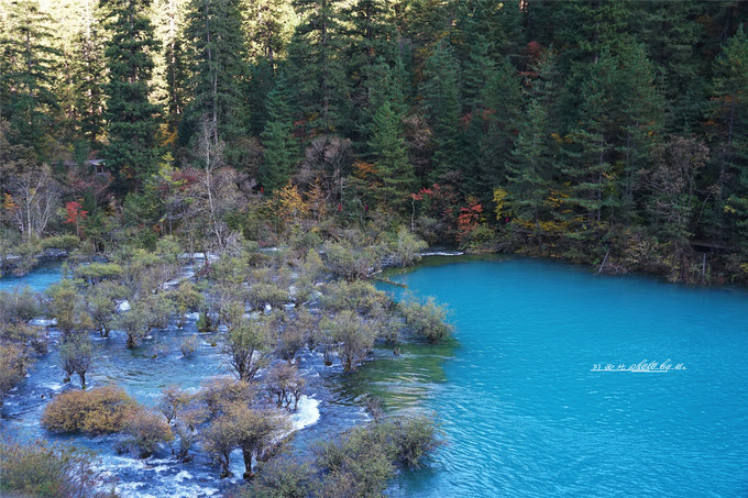4、观光车采用公交模式运行,大部分景点都设有站台,树正沟建议坐左边可观海子;则查洼沟也坐左边,日则沟就要坐右边,也是风景最集中、最精华的一段。因为景区目前实施分流游览,受你所乘坐的观光车调度影响,你被放到三个沟的任意一沟都有可能,我们就被首先放到了树正沟游览,因此错过了镜海清晨最美的时刻。