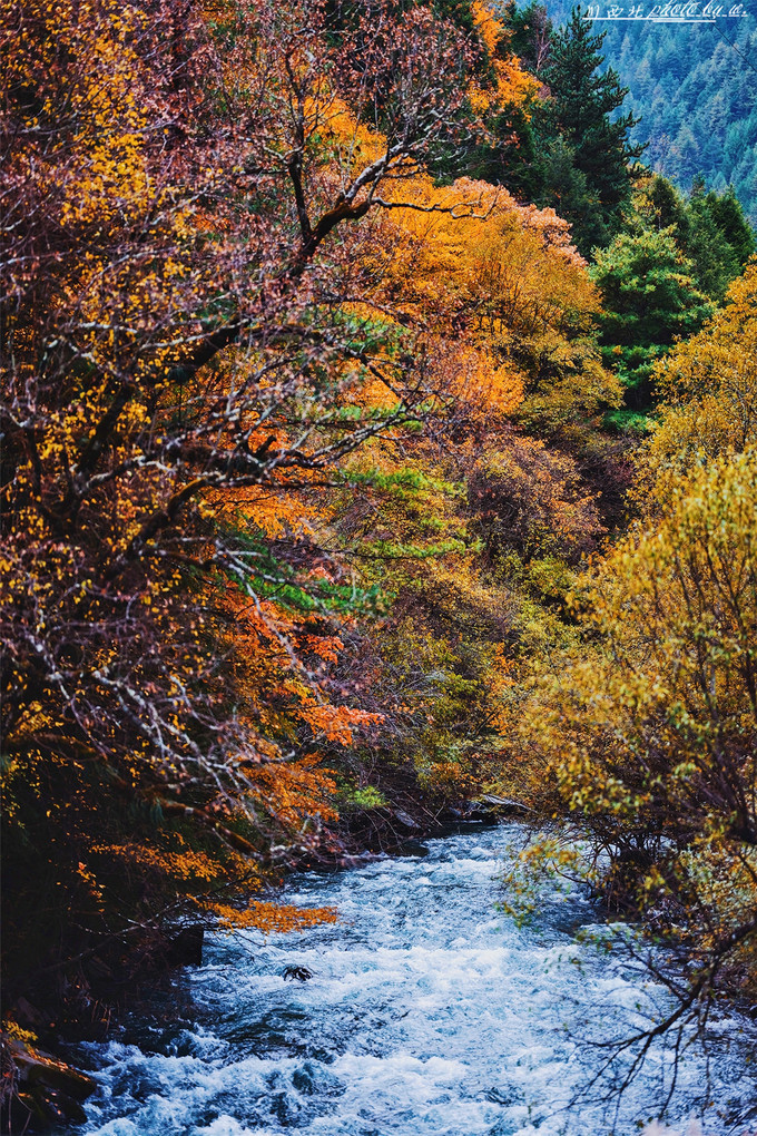 顺着奶子河一路向前,万山虽未红遍、层林却已尽染,我频频按下快门,记录这无法言喻的美景。