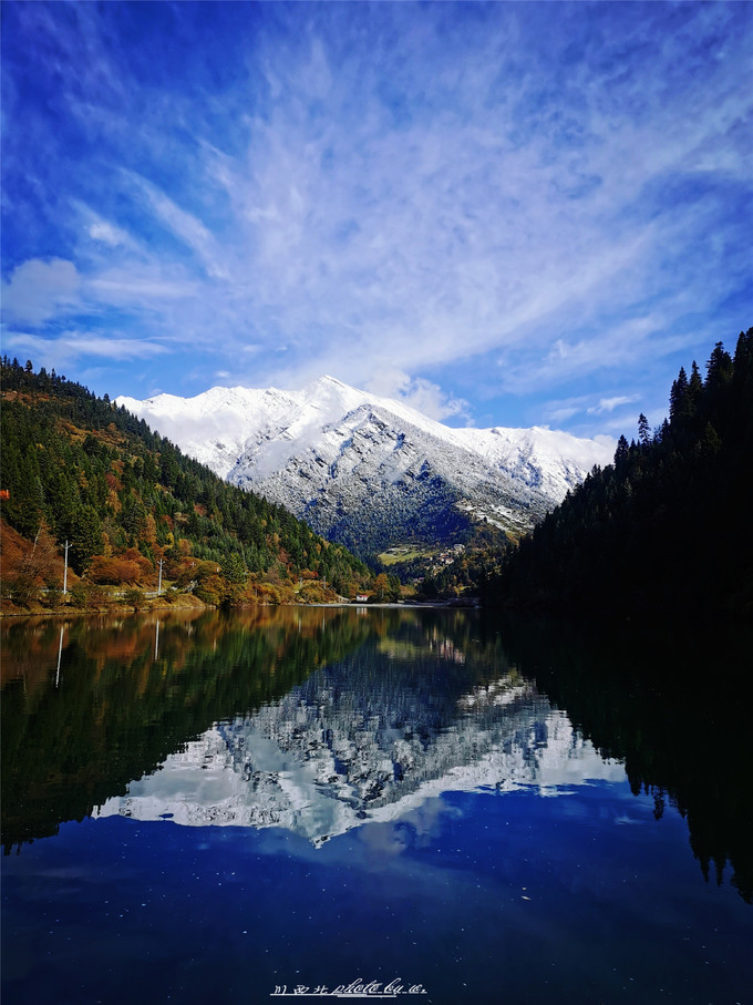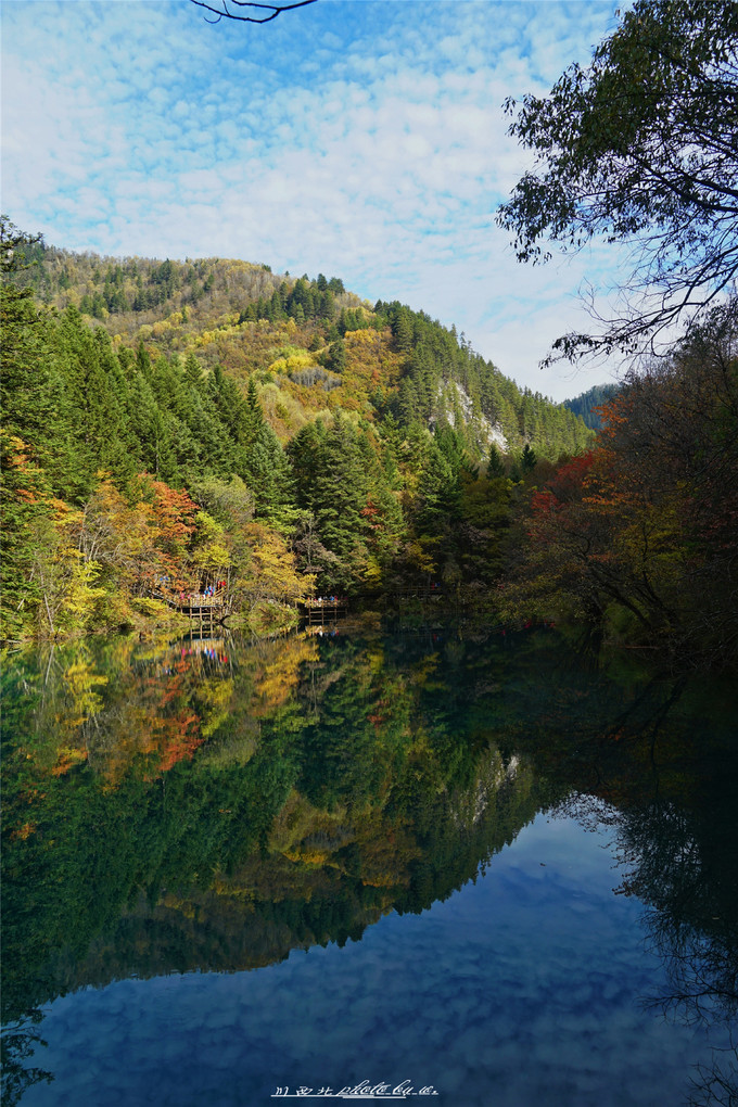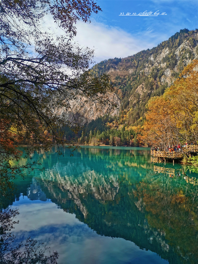 如果只有一面之缘,那这个景点的风光和运气难免会有很大的关系,镜海就是这样。清晨我们在观光车上经过镜海时,海子还未苏醒,平如明镜,惊艳了众人。待我们从五花海返回镜海时,微风已将海子搅出一圈圈的涟漪,让倒影荡然无存。错过了虽说难免会有些遗憾,但大家都没有抱怨,只是没有在合适的时间和合适的地点遇见罢了,旅途中,一颗随遇而安的心才最珍贵。放一些我多年前拍摄的镜海照片,权当忘梅止渴吧。
