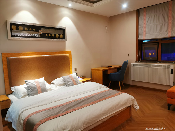 赶到理县吉祥紫莲酒店天已黑尽,274一晚(含早)的豪华大床房干净温馨,有空调,有暖气,卫生间热水够大,早餐也还算丰富,谢谢嘉嘉推荐。