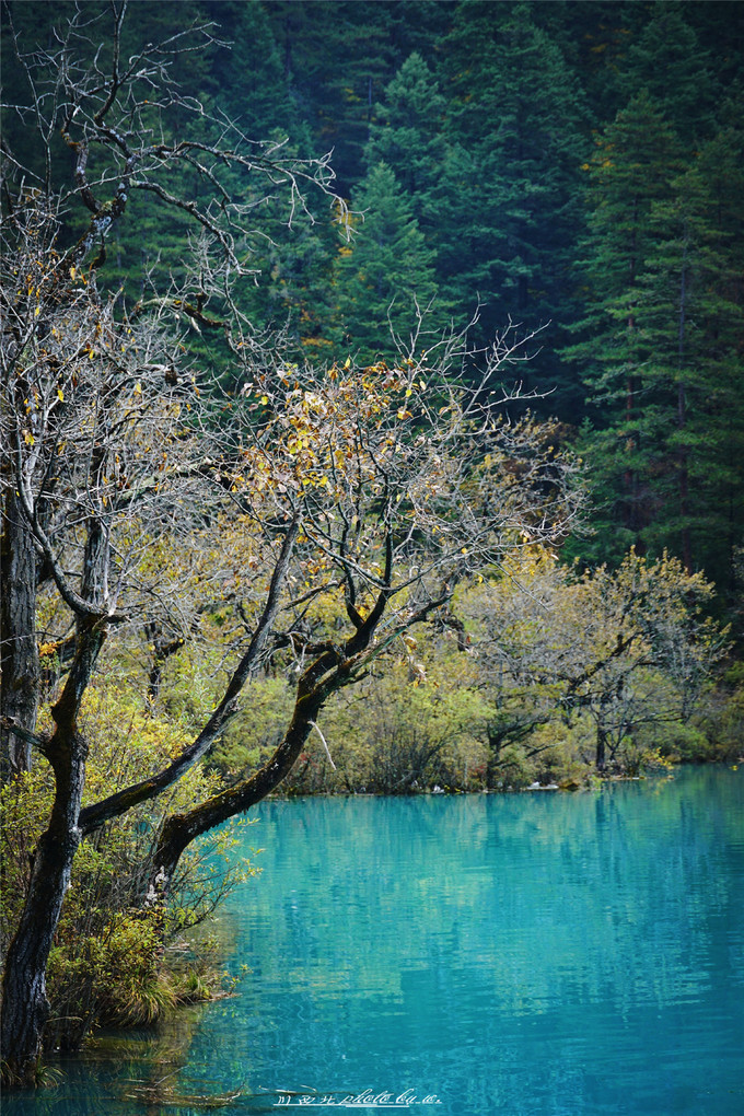 五彩池,九寨沟最小的海子,水却最艳、最浓、最亮,如一颗艳丽的蓝宝石镶嵌在这深山密林之中。