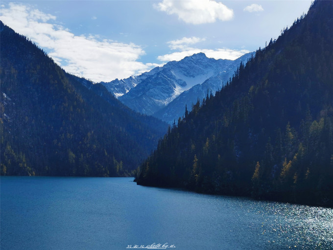 长海是九寨沟海拔最高、湖面最宽的海子,墨蓝海水,倒影着远处的雪山,如梦如幻。