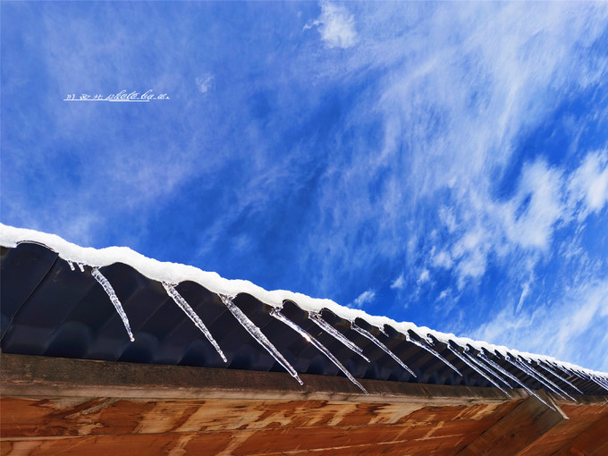 坐在满是积雪的栈道上, 当阳 光从云缝里透出第一丝温暖时,寒冰与温热碰撞出感动深刻我心。