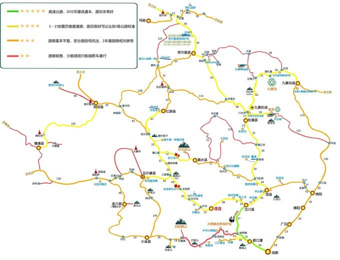 PS:G213穿行于岷江河谷,地震断裂带,沟壑纵横,山峦起伏,沿途路窄、弯多,区间测速接连不断,限速70,场镇限速40,有压线电子监控,谨慎驾驶,安全第一。
