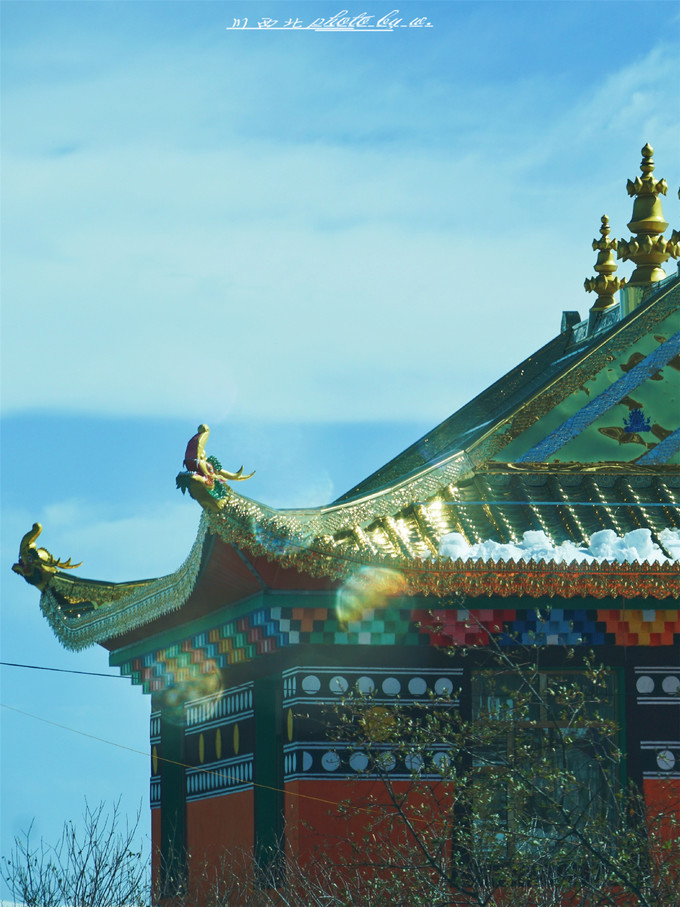 路过一个不知名的寺庙,白塔,转经筒,金顶下精致的木雕,还有寺庙对面的高山上那遍布的经幡阵。或许对于那些虔诚的信徒来说 ,只有信仰,才能让心绪平静,遇见的,遇不见的,都在这一世一轮回中解脱。