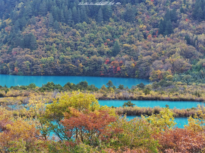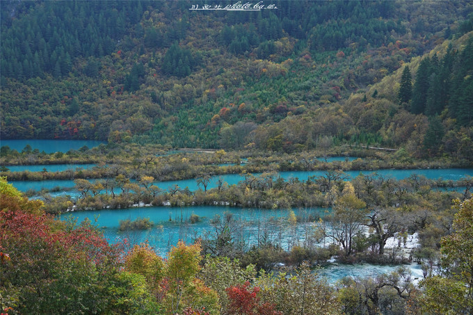 站在公路栈道上俯瞰谷底的树正群海,便是整个九寨沟的缩影。那一长串的海子依次排开,如同散落在群山间的蔚蓝色珍珠,晶莹圆润,又灵动婉约。