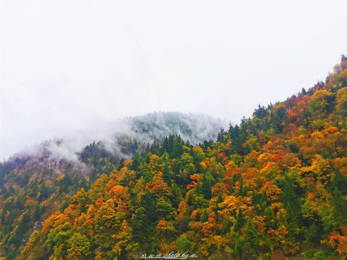 2、奶子沟,其实没有一个明确的景点,风景在路上,沿途有很多观景台。要看彩林最好的季节应该是10月下旬至11月上旬,当然也要看每年的气候,可能早那么几天,也可能晚那么几天。