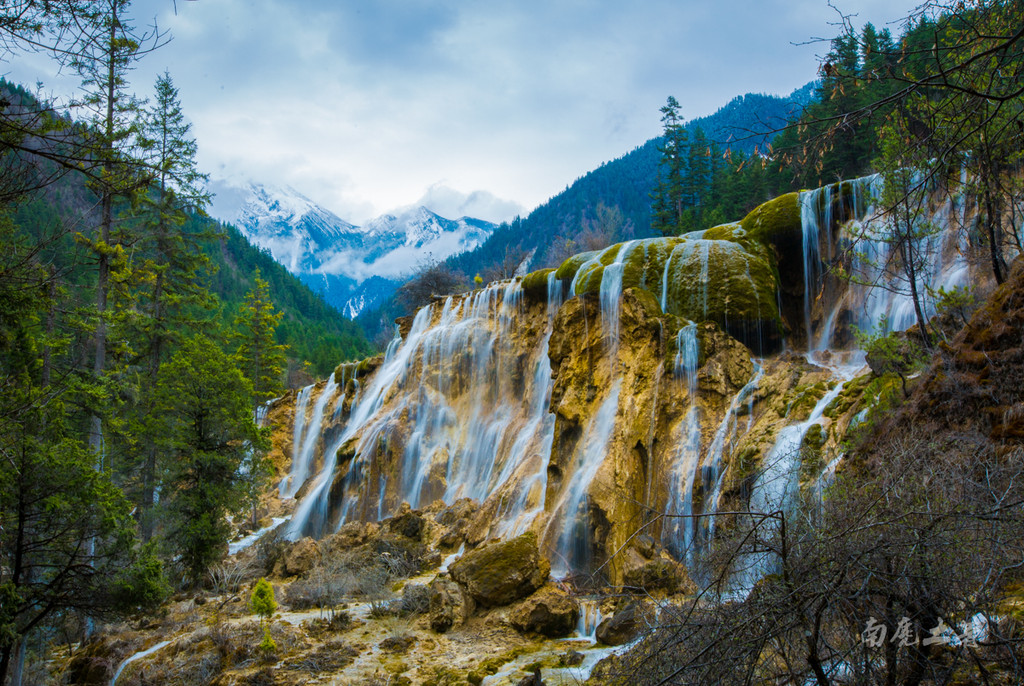 17年8.8地震,诺日朗瀑布发生严重垮塌,修复后似乎没什么变化,上游顶部平整如台,水到边缘突然跌落,春天宛若一个刚刚苏醒的孩子,欢呼雀跃地奔流在苍翠的崖壁上,空灵翠绿,水流有如帘幕一般。