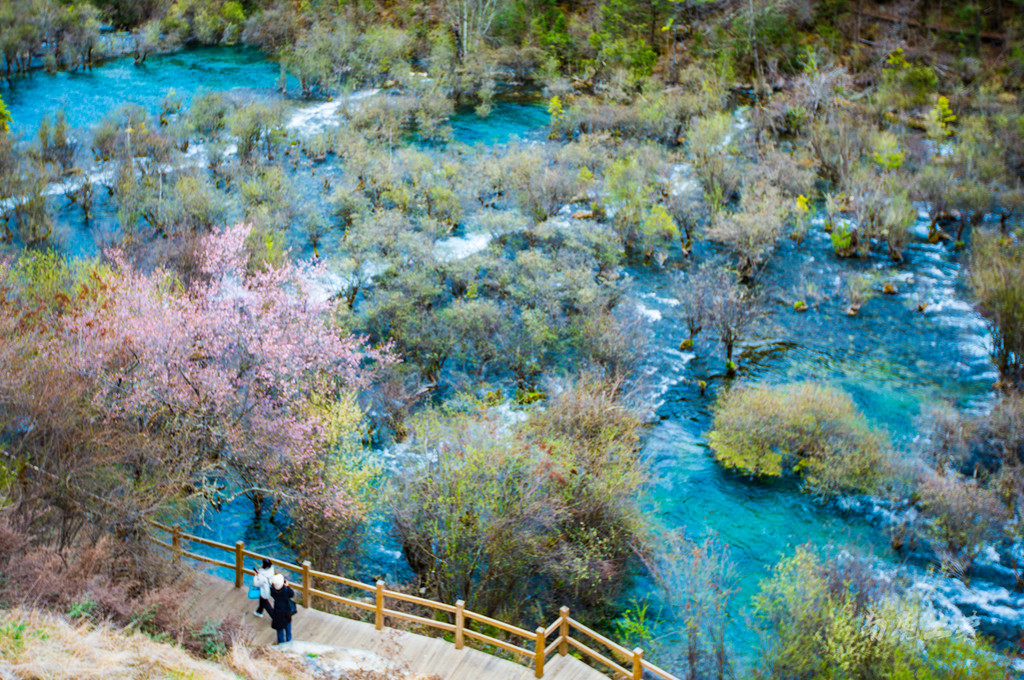 江南的桃花谢了有月余,九寨沟的粉桃还相映与蓝海绿水间,平添了斑斓的春色,地震造成了严重的破坏,但修复后的九寨沟,归来依然不看水,只是日则沟方向还有几个点没有开放,要细细品味估计还要等一段时间,最好安排两天时间。