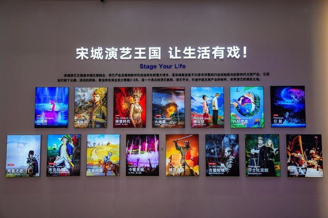 首先从羌藏建筑风格大门进入,是大气辉煌的游客中心,同时也是检票的进出口,整个大厅除了游客服务的功能外,还讲述了整个宋城千古情的前世今生,有关宋城演绎的台前幕后故事在这里一一展现,有兴趣可以驻足观看。