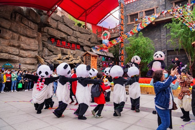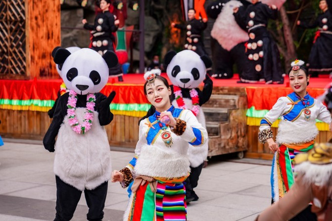 九寨千古情景区内《土司招婿》《锅庄狂欢》《熊猫打麻将》等演艺秀精彩纷呈,走进九寨千古情就是进入一次奇幻的穿越之旅。