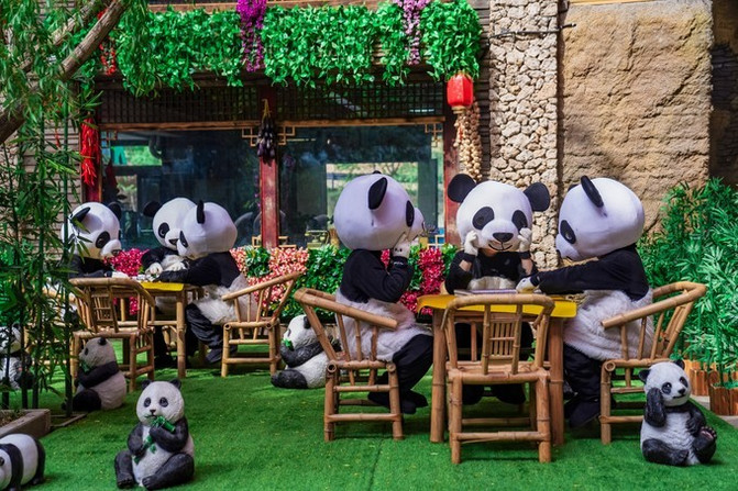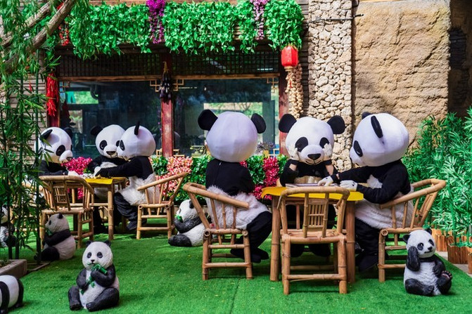 都知道四川有两样东西全国人民都知道,一个是憨态可掬的大熊猫,一个就是打麻将,四川人超喜欢打麻将,在这里熊猫打麻将三缺一,等你来战。