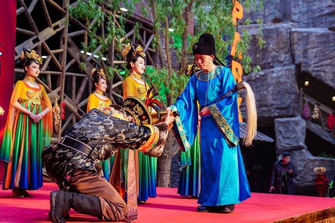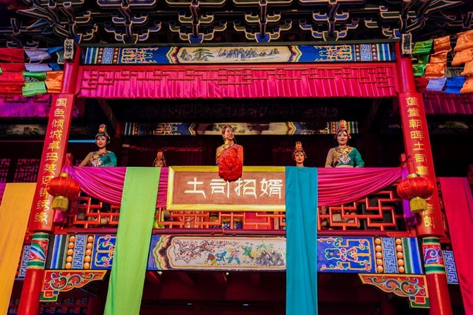 土司府擂台比武招婿,老桥段却有新趣味,现场招募观众,以幽默诙谐的故事节奏,讲述了当地土司女儿招贤纳婿的趣味故事。