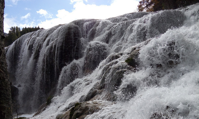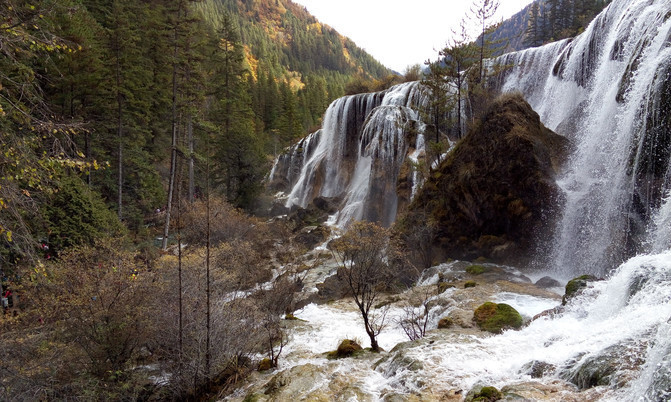 五花海往下就到了珍珠滩瀑布,瀑布的壮丽并不能和全国各地的大瀑布相比,但这片在特定景色中的白,却也是独一无二,加上这个瀑布是86版西游记的取景地,还是吸引了很多人的围观拍照。