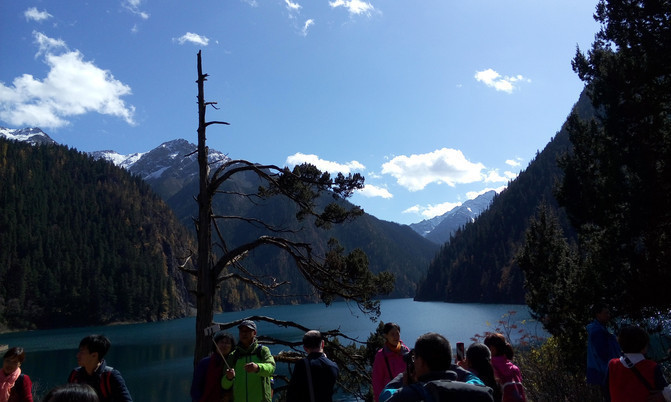 瀑布继续往下,就到了镜海,不过有了五花海的朱玉在前,其他海子也多少失了姿色。在往下就回到了诺日朗游客中心,我们在这里稍作休整就继续乘车前往下一条沟—查洼沟。这条沟是三条里最长的,不过景点相对较少,只有四个,沿途往上,我们决定就游览里面2个景点—长海和五彩池。车子经过半个小时的行驶,就到了沟的顶点—长海。