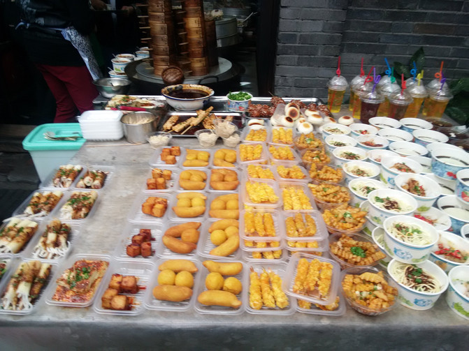 不过说实话,火锅并没有想象中的美味,虽然饿了,也点了一桌,但并没有意犹未尽的感觉,不知道是不是没有吃到最正宗的,下次一定要百度一下哪家最正宗!吃饱喝足就开始在巷子闲逛。巷子刚开始是一排小吃摊,各式各样的小吃整齐得摆在摊位上,香味四溢,红的辣椒,绿的香菜,黄的香油。。。巧妙搭配起来,非常赏心悦目。路两边是一排排琳琅满目的小商铺,装修的很有民族风格,里面的商品五颜六色的。