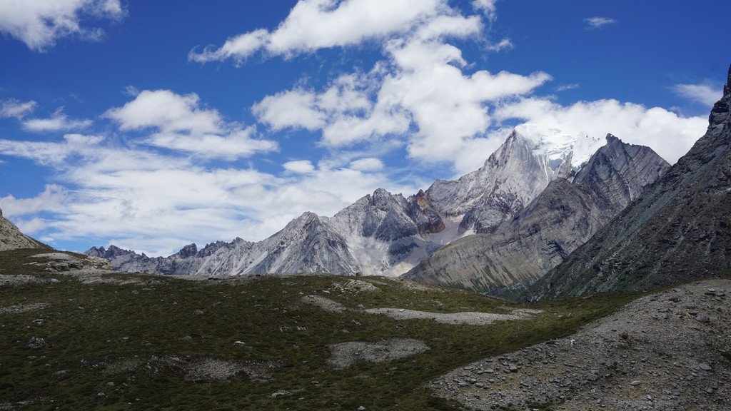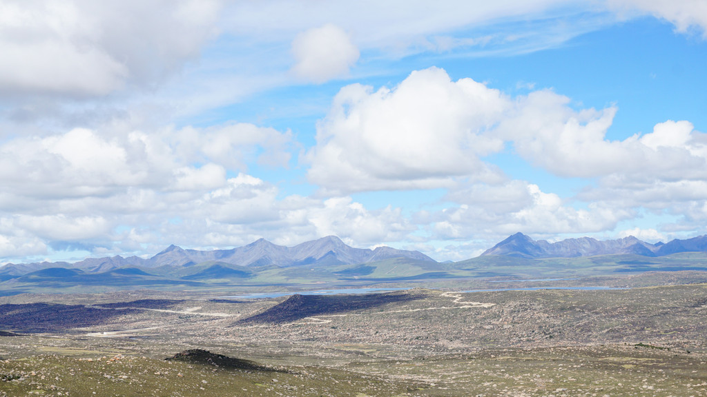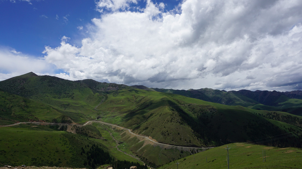 走过天路十八弯,穿过剪子弯山隧道,峡谷蜿蜒幽静,山顶雄浑圆壮,绿草幽幽,牦牛成群。接着翻越海拔4668米的尼玛贡和4718米卡子拉山垭口。放眼望去,千山万壑,层峦叠嶂,一层比一层更远,一层比一层颜色更浅,逶迤连绵,直至天边,真像行走在天路之上。